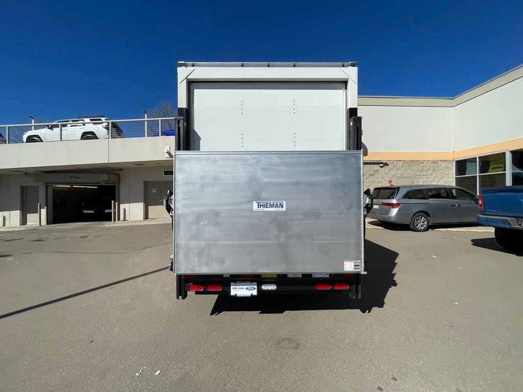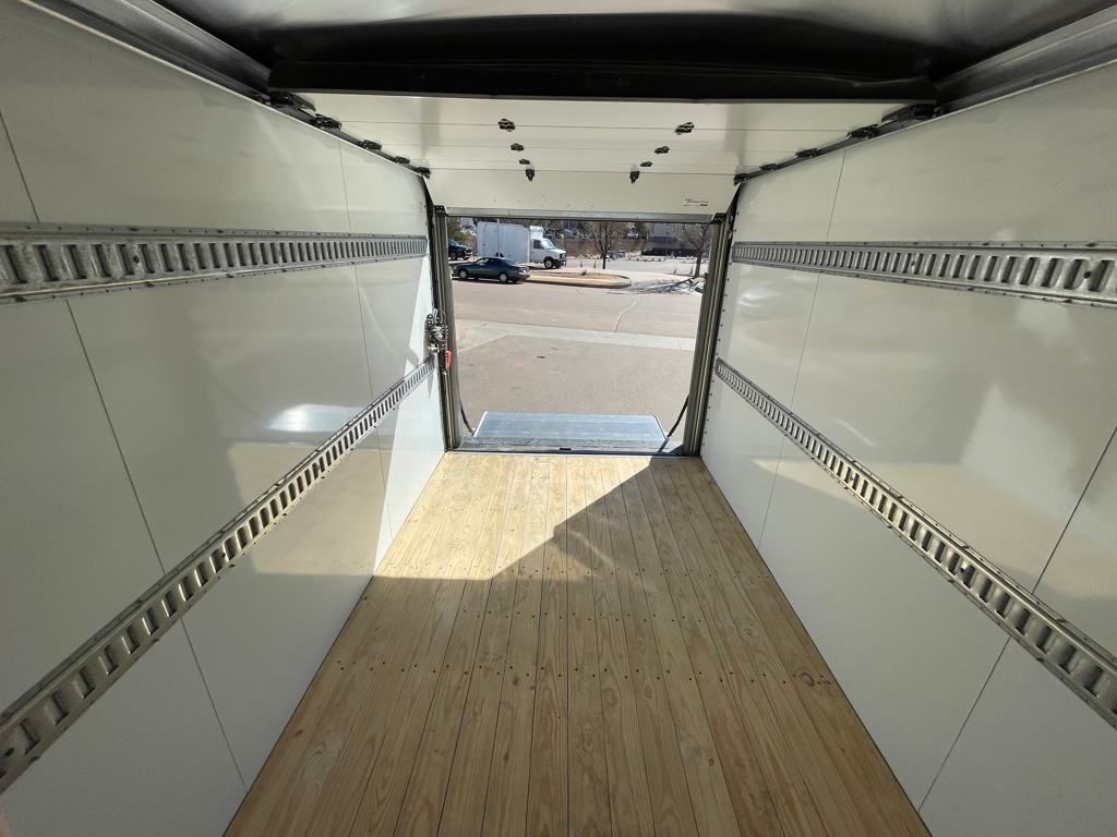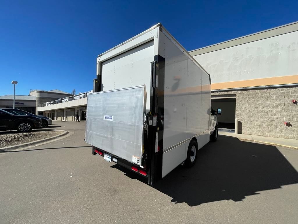 Introducing the 12' Duraplate Utilivan II by Utilimaster, a rugged and reliable box van designed for heavy-duty performance. Built with durable Duraplate construction, this van boasts a 12' length, 84" height, and 96" width, offering ample cargo space. Key features include a solid aluminum roof, a sturdy pine floor, and a solid bulkhead for added durability. The rear roll-up door and E-Track cargo control system on both sides ensure secure and efficient loading. Enhanced with a Thieman TVLR-125 rail gate liftgate (75" x 42" platform + 6", 1250 lbs rated), ICC bumper, and mud flaps, this van is equipped for seamless operation and safety. Perfect for businesses needing a dependable and versatile cargo solution.