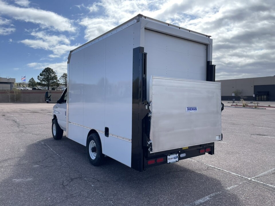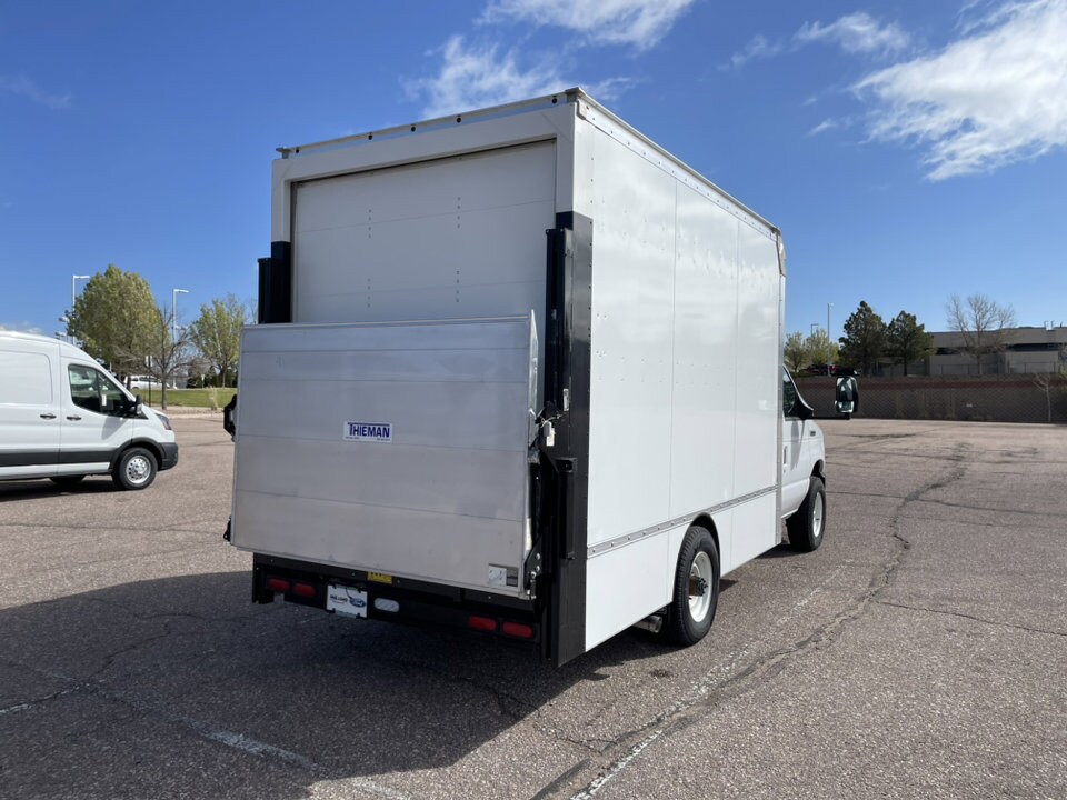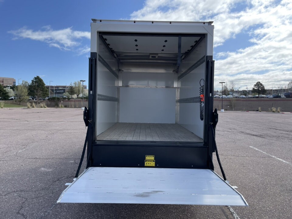 Introducing the 12' Duraplate Utilivan II by Utilimaster, a rugged and reliable box van designed for heavy-duty performance. Built with durable Duraplate construction, this van boasts a 12' length, 84" height, and 96" width, offering ample cargo space. Key features include a solid aluminum roof, a sturdy pine floor, and a solid bulkhead for added durability. The rear roll-up door and E-Track cargo control system on both sides ensure secure and efficient loading. Enhanced with a Thieman TVLR-125 rail gate liftgate (75" x 42" platform + 6", 1250 lbs rated), ICC bumper, and mud flaps, this van is equipped for seamless operation and safety. Perfect for businesses needing a dependable and versatile cargo solution.