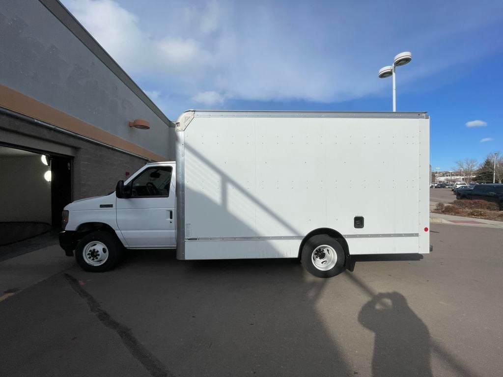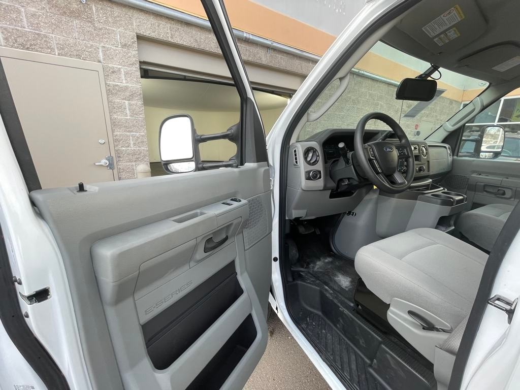 Oxford White 2024 Ford E-450SD DRW 14' Box Truck RWD 6-Speed Automatic with Overdrive 7.3L V8 7.3L V8, 6-Speed Automatic with Overdrive, RWD, Oxford White, Medium Flint w/Cloth Bucket Seats.