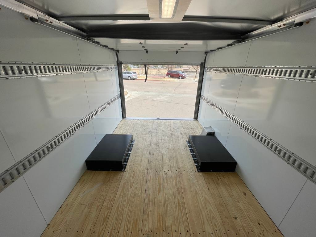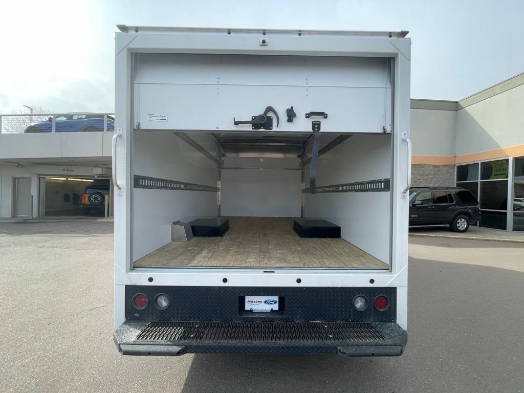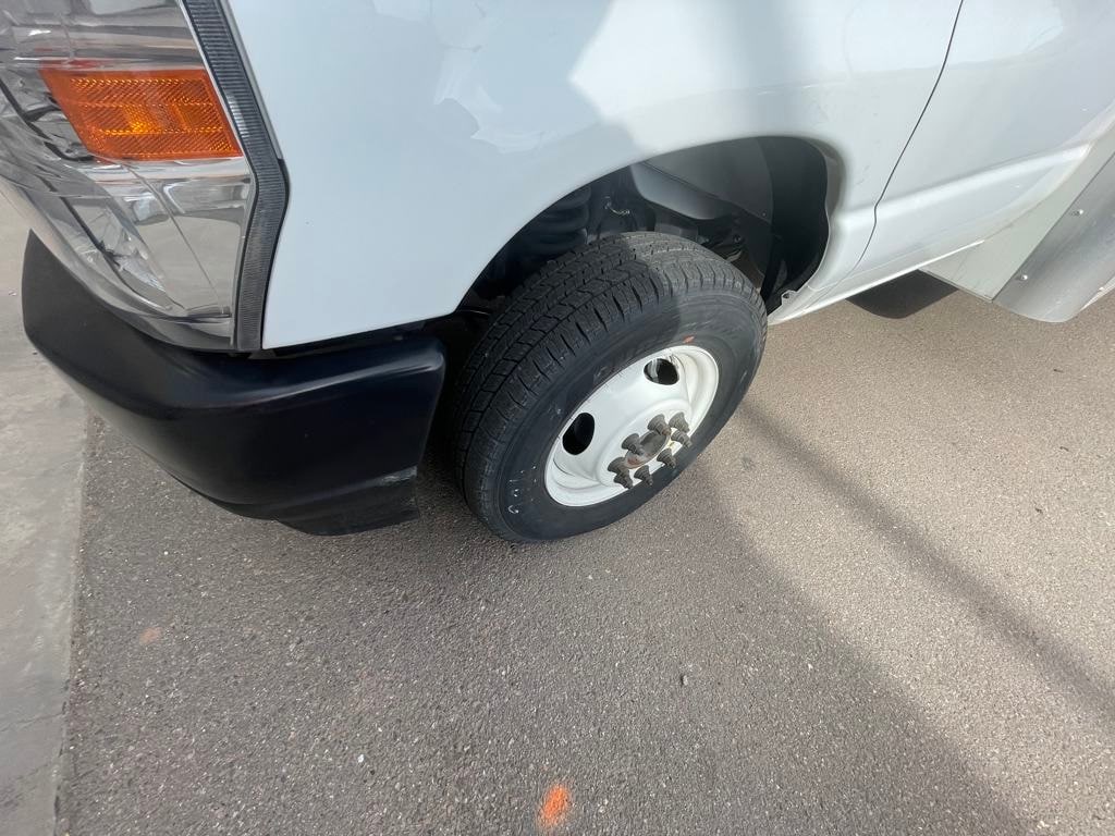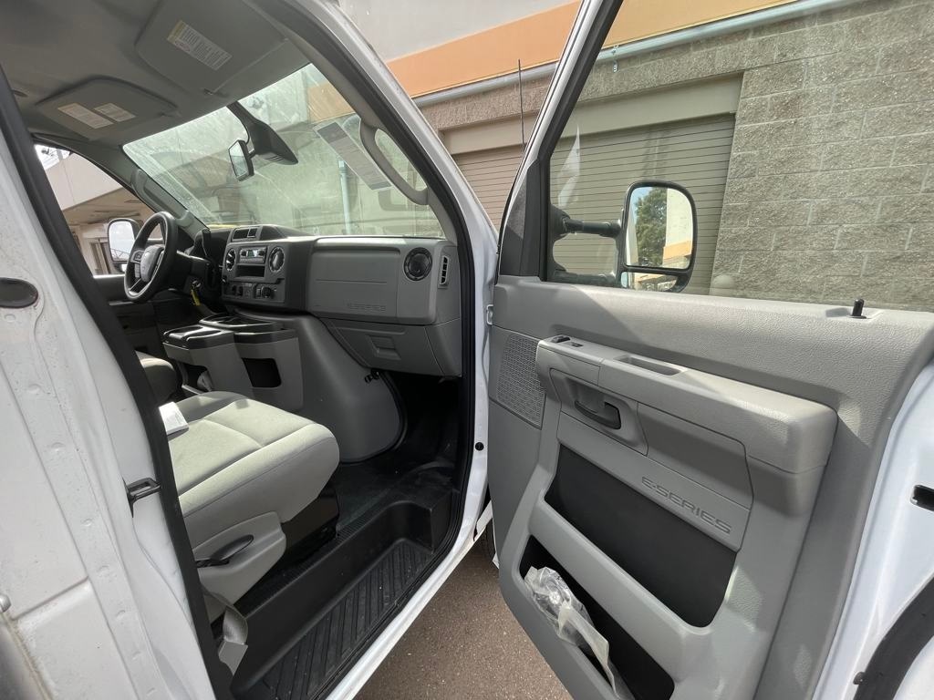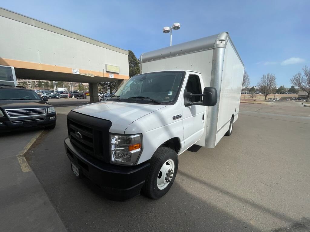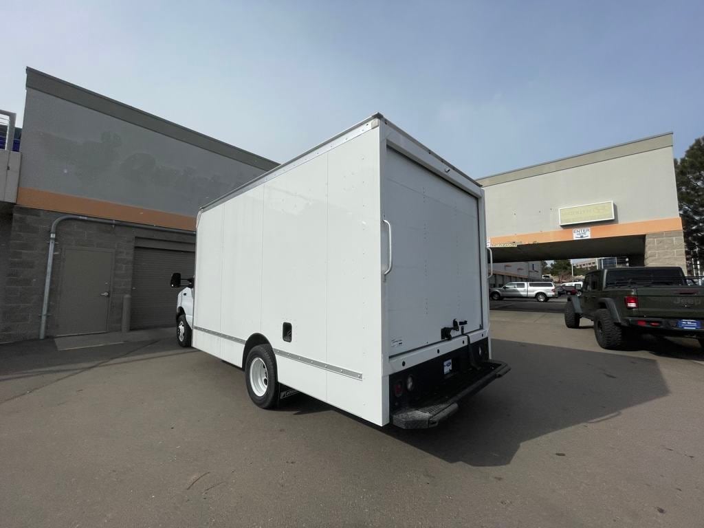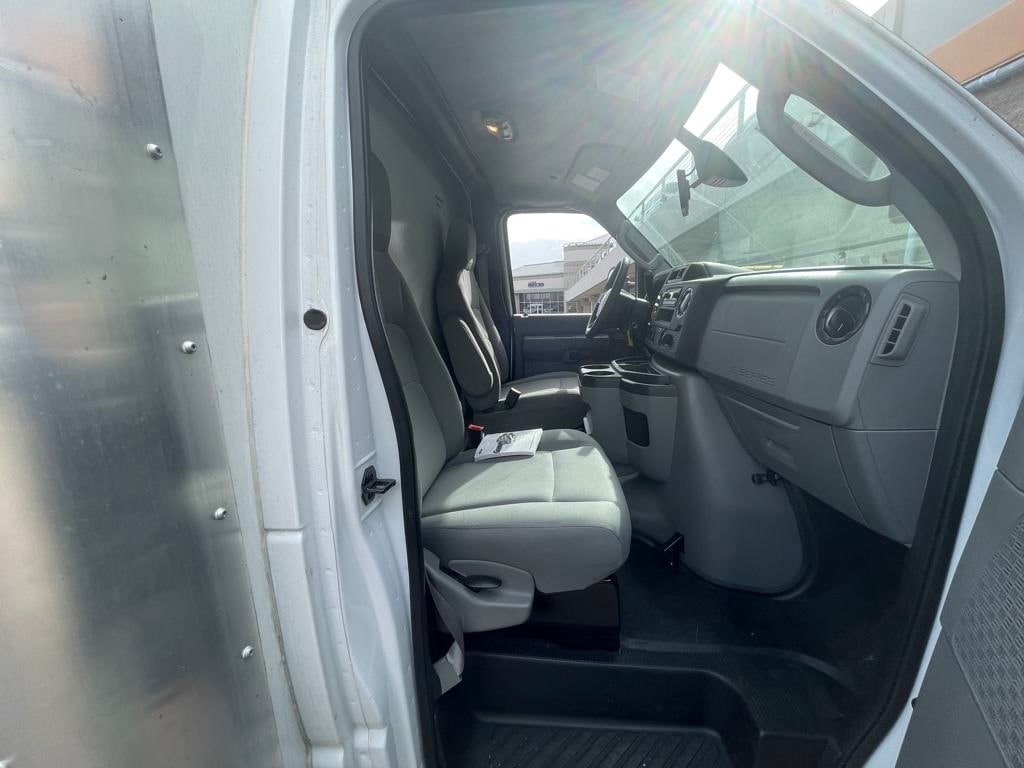Oxford White 2024 Ford E-450SD DRW 14' Box Truck RWD 6-Speed Automatic with Overdrive 7.3L V8 7.3L V8, 6-Speed Automatic with Overdrive, RWD, Oxford White, Medium Flint w/Cloth Bucket Seats.