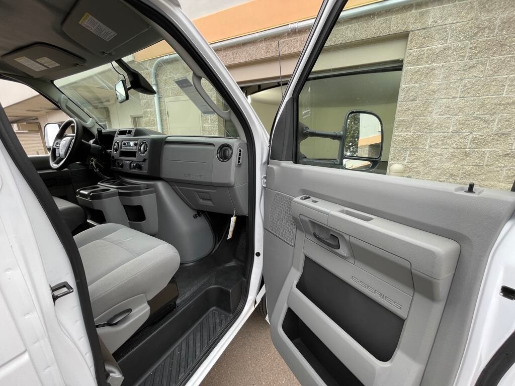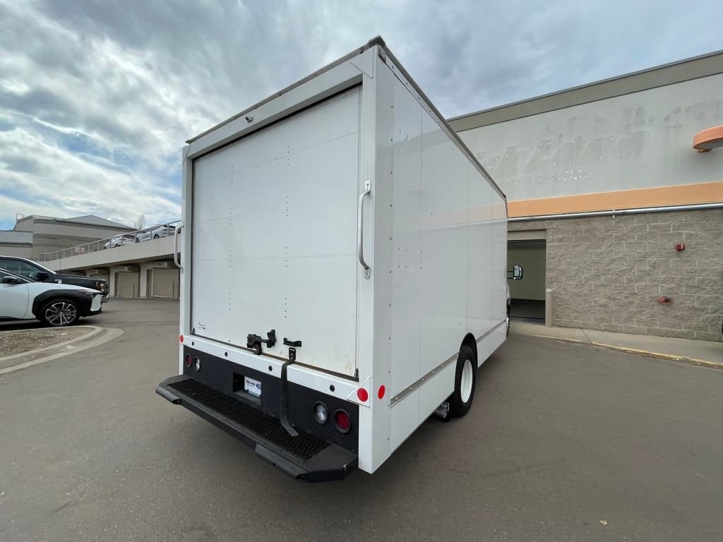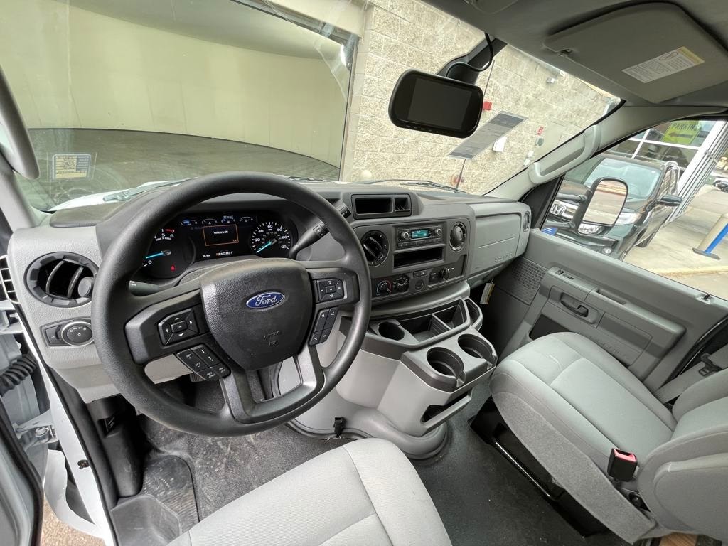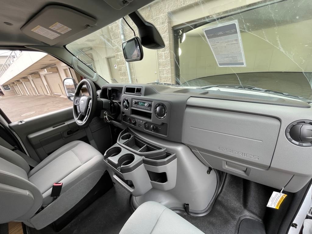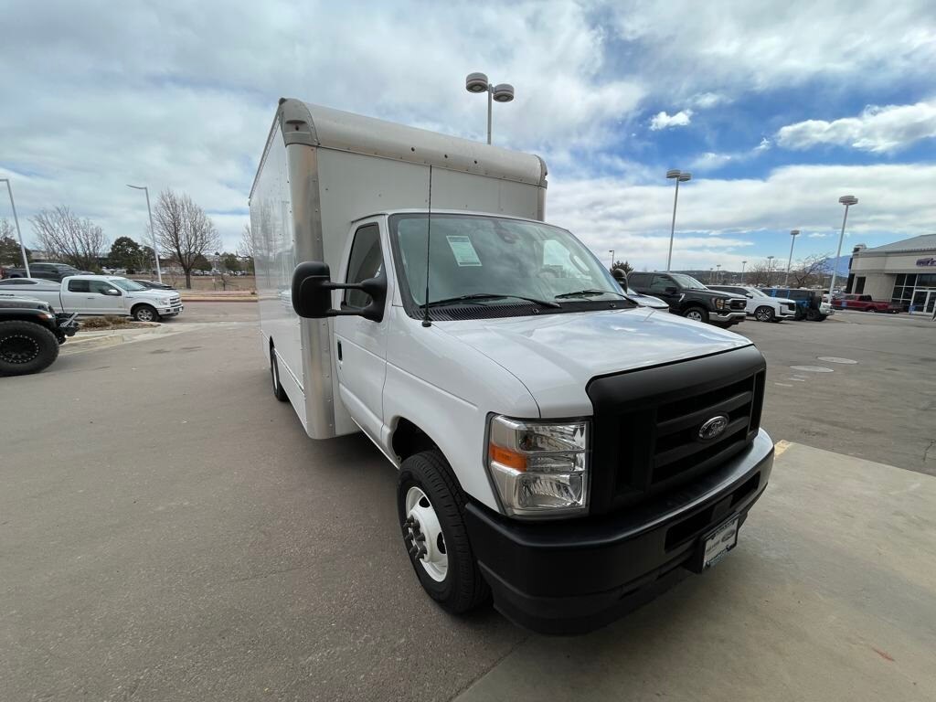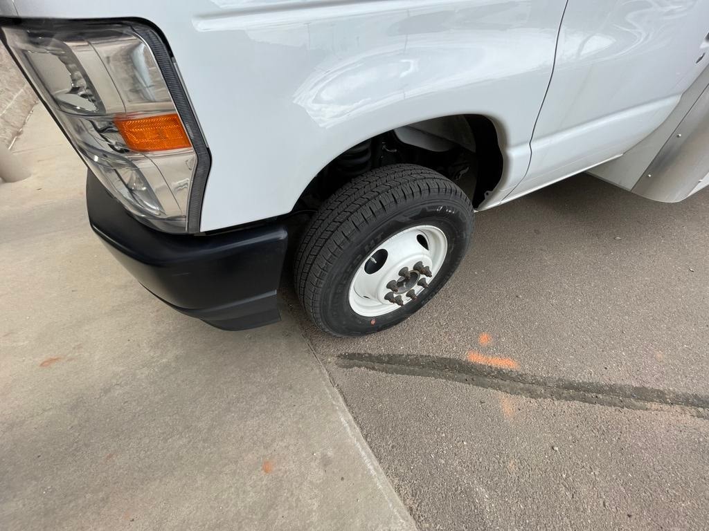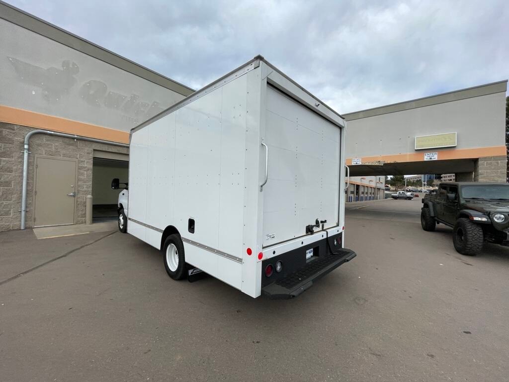 Oxford White 2024 Ford E-450SD DRW 14' Box Truck RWD 6-Speed Automatic with Overdrive 7.3L V8 7.3L V8, 6-Speed Automatic with Overdrive, RWD, Oxford White, Medium Flint w/Cloth Bucket Seats.