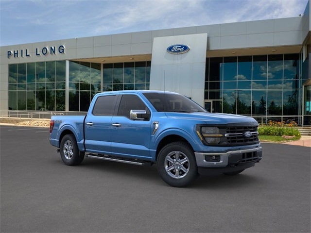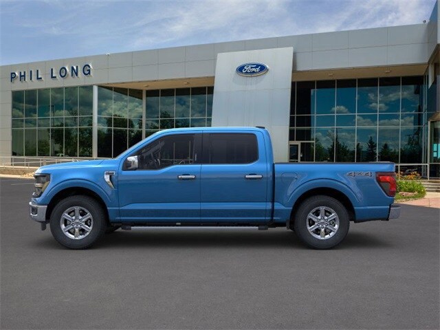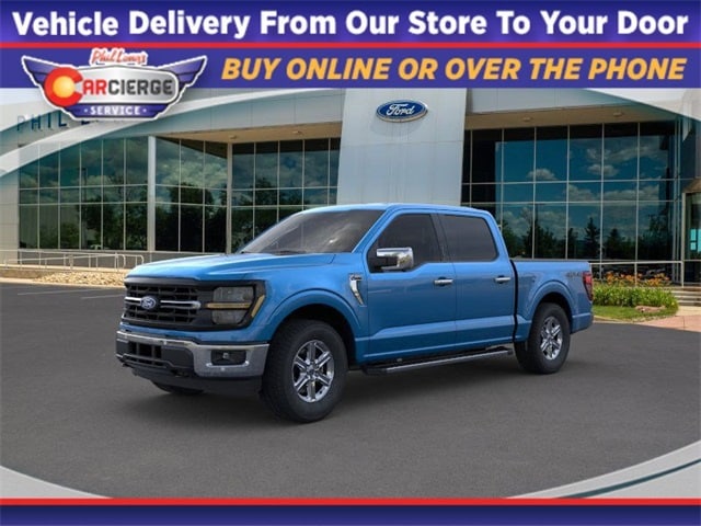 EQUIPMENT GROUP 302A MID Adaptive Cruise Control w/Stop & Go, lane centering, Speed Sign Recognition, Intelligent Access w/Push Button Start, approach detection, 400W Cab & Bed Outlets, Ford BlueCruise Equipped (90-Day Trial), See ford.com/bluecruise for version details, Power-Sliding Rear Window, Remote Start System w/Remote Tailgate Release, Heated Front Seats, Power Glass Heated Sideview Mirrors, manual folding, turn signals, high-intensity LED security approach lamps, LED sideview mirror spotlights and chrome skull caps, Auto-Dimming Rearview Mirror, BED UTILITY PACKAGE Tailgate Step w/Tailgate Work Surface, LED Box Lighting, 4 Pickup Box Tie-Down Plates, TOUGH BED SPRAY-IN BEDLINER, ELECTRONIC LOCKING W/3.55 AXLE RATIO, TRANSMISSION: ELECTRONIC 10-SPEED AUTOMATIC SelectShift w/progressive range select and selectable drive modes: normal, ECO, sport, tow/haul, slippery, deep snow/sand and mud/rut (STD). Ford XLT with Atlas Blue exterior and Medium Dark Slate interior features a V6 Cylinder Engine with 325 HP at 5500 RPM*.