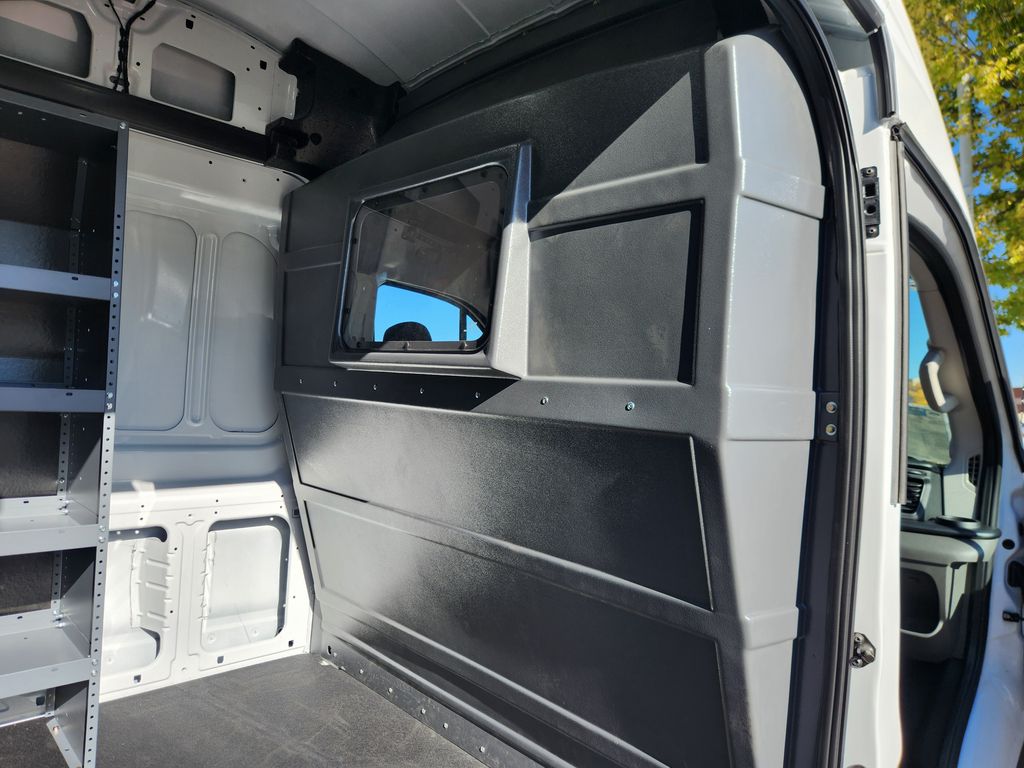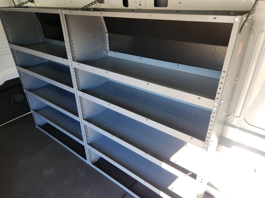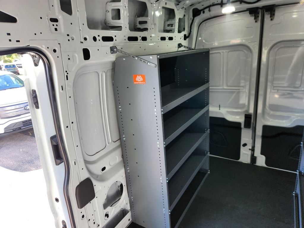 This upfitted Ford Transit van features a Master Rack shelving system for ultimate organization and an added bulkhead for safety. It's the perfect mobile workshop, designed to save you time and keep you productive on every job.
