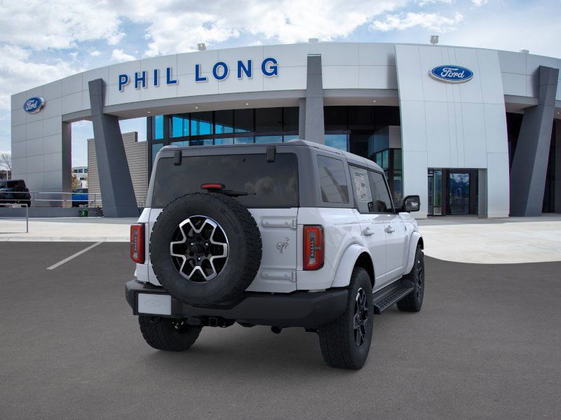 Oxford White 2025 Ford Bronco Outer Banks 4WD 10-Speed Automatic 2.7L EcoBoost V6 Bronco Outer Banks Advanced, 4D Sport Utility, 2.7L EcoBoost V6, 10-Speed Automatic, 4WD, Oxford White, 7v Lthr-Trm/Vinyl Black Onyx Interior Vinyl.
