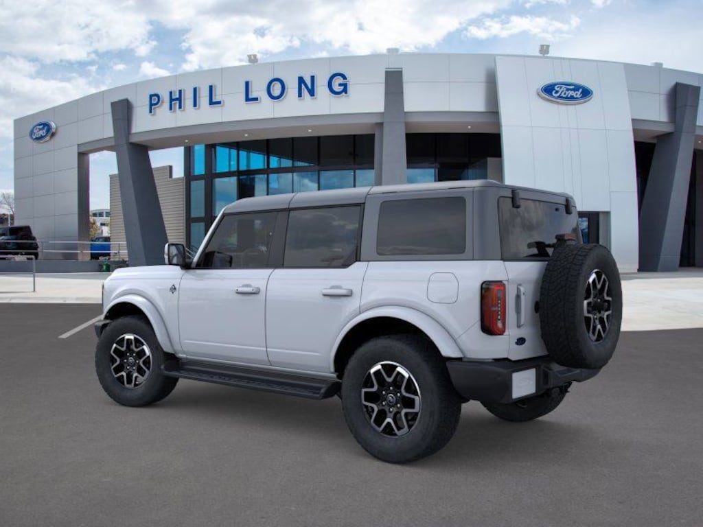 Oxford White 2025 Ford Bronco Outer Banks 4WD 10-Speed Automatic 2.7L EcoBoost V6 Bronco Outer Banks Advanced, 4D Sport Utility, 2.7L EcoBoost V6, 10-Speed Automatic, 4WD, Oxford White, 7v Lthr-Trm/Vinyl Black Onyx Interior Vinyl.