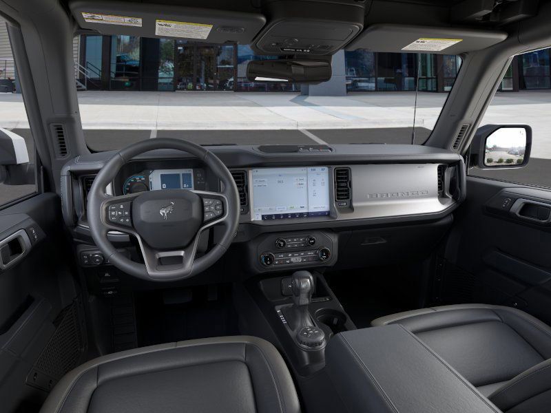 Oxford White 2025 Ford Bronco Outer Banks 4WD 10-Speed Automatic 2.7L EcoBoost V6 Bronco Outer Banks Advanced, 4D Sport Utility, 2.7L EcoBoost V6, 10-Speed Automatic, 4WD, Oxford White, 2v Lth-Trm/Vinyl Smoked Truffle Black Onyx Interio Vinyl.
