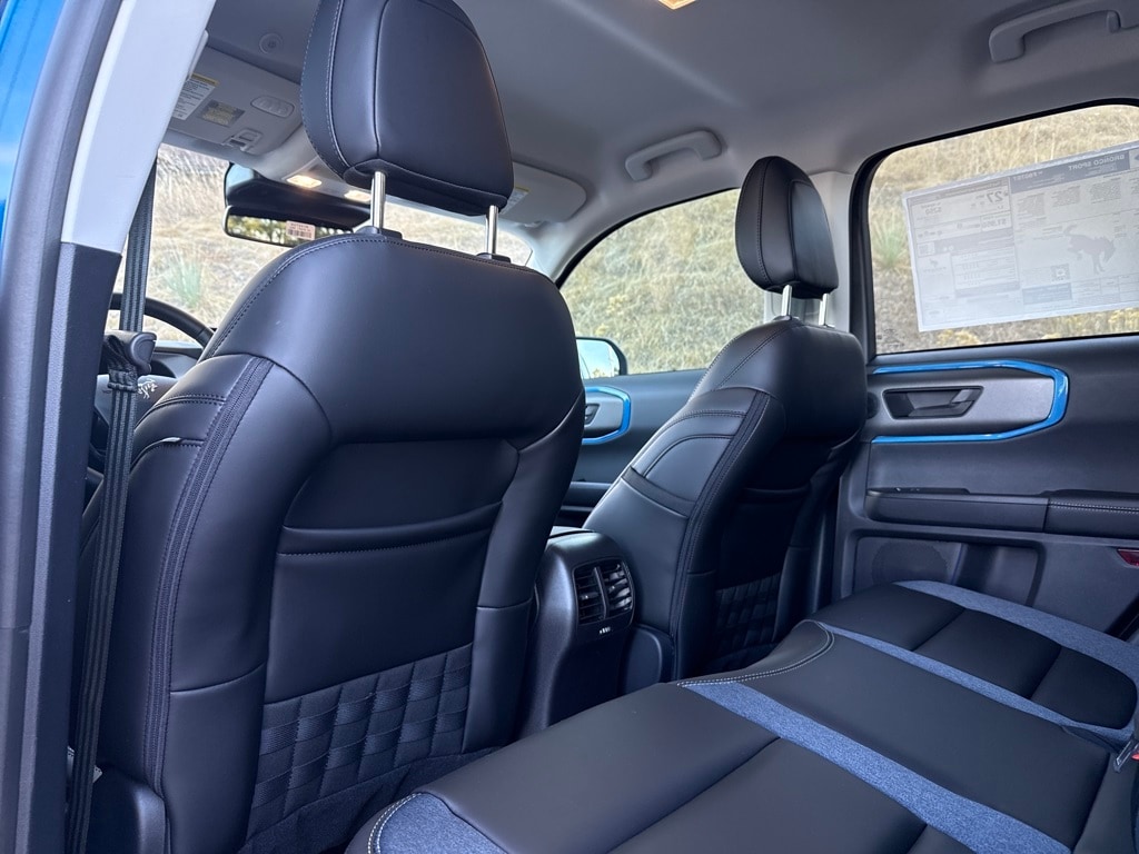 OUTER BANKS TECH PACKAGE+ Ford Co-Pilot360 Assist 2.0, Reverse Brake Assist, Front Parking Sensors, 360-Degree Camera w/Trail & Split View, power heated glass sideview mirrors w/manual fold and memory, B&O Sound System by Bang & Olufsen, 10 speakers and subwoofer, Connected Navigation, 1-year subscription, pinch-to-zoom capability, live traffic, predictive destinations and route guidance and one box search, Navigation services require SYNC 4 and Bronco Trail App (optional on select vehicles), complimentary connect service and the FordPass app (see FordPass terms for details), Customer receives a complimentary 1-year subscription of navigation services when an eligible vehicle is added to a members FordPass account, Trial period begins on the new vehicle warranty start date, At the end of. Ford Outer Banks with Velocity Blue exterior and Platinum Blue interior features a 3 Cylinder Engine with 181 HP at 6000 RPM*.