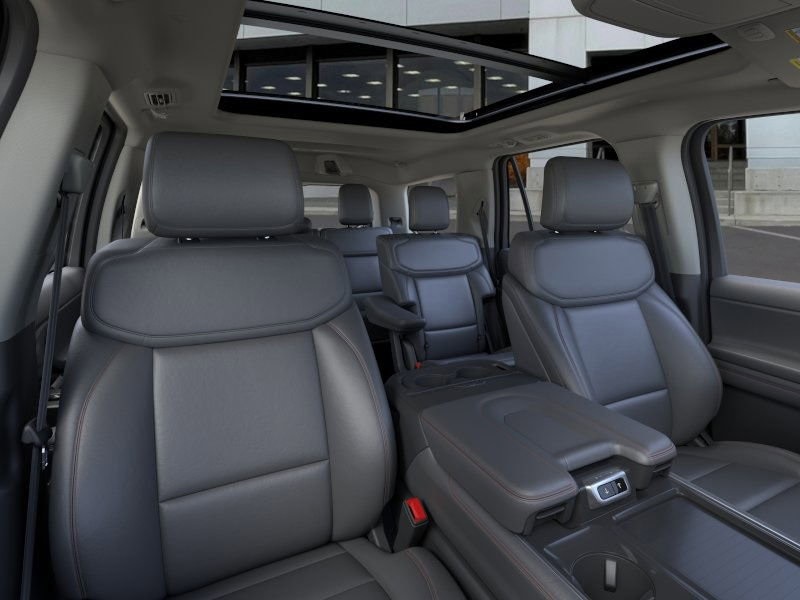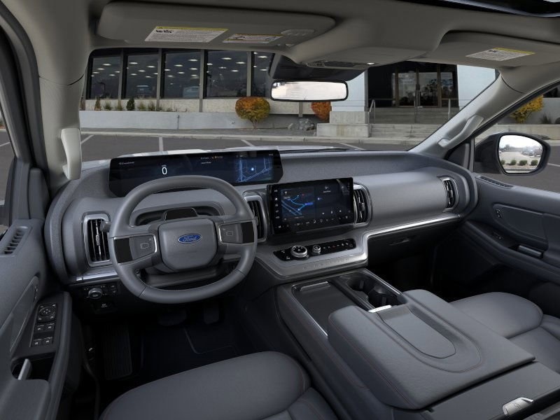 EQUIPMENT GROUP 202A HIGH PACKAGE Ford Split Gate, power upper liftgate and power lower tailgate, Wheels: 20 Carbonized Gray Bright Machined Aluminum, 360-Degree Zone Lighting, 110V/400W AC Power Outlet, 1 console outlet and one cargo area outlet, BlueCruise Equipped, 90-day trial, Not available to military sales, Universal Garage Door Opener, Power Panoramic Vista Roof w/Power Sunshade, Rain Sensing Wipers, Power Tilt/Telescopic Steering Wheel w/Memory, Memory Driver Seat, Tires: P275/60R20 AT, Ford Co-Pilot360 Active 2.0, Driver State Detection, Intersection Assist, pre-collision assist w/autonomous emergency braking, pedestrian detection, forward collision warning and dynamic brake support, Front Side Laminated Glass, Wireless Charging Pad, Located in media hub, 2nd Row Power-Folding. Ford Active with Glacier Gray Metallic Tri-Coat exterior and Dark Gray interior features a V6 Cylinder Engine with 400 HP at 5200 RPM*.
