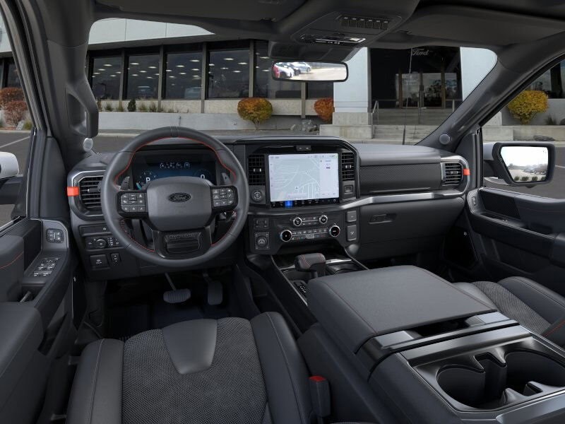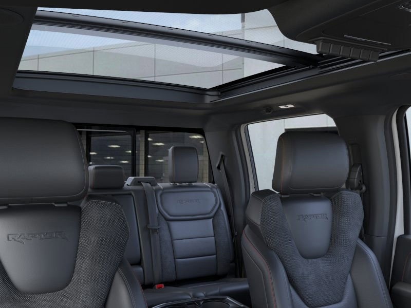 Equipment Group 802A Raptor 37 (Carbon Fiber Interior Appliques, Dual Valve Shocks, Modular Front Bumper, RECARO Alcantara Suede Front Seats, and Wheels: Raptor 37 Unique 17" Cast Aluminum), 4WD, 14 Speakers, 17" Cast Aluminum Wheels, 4-Wheel Disc Brakes, ABS brakes, Adjustable pedals, Air Conditioning, Alloy wheels, AM/FM radio: SiriusXM with 360L, Auto High-beam Headlights, Auto tilt-away steering wheel, Auto-dimming door mirrors, Auto-dimming Rear-View mirror, Automatic temperature control, Brake assist, Bumpers: body-color, Compass, Delay-off headlights, Driver door bin, Driver vanity mirror, Dual front impact airbags, Dual front side impact airbags, Electronic Locking w/4.10 Axle Ratio, Electronic Stability Control, Emergency communication system: SYNC 4 911 Assist, Engine Block Heater, Front anti-roll bar, Front Bucket Seats, Front Center Armrest, Front dual zone A/C, Front fog lights, Front License Plate Bracket, Front reading lights, Front wheel independent suspension, Fully automatic headlights, Garage door transmitter, Heads-Up Display, Heated door mirrors, Heated front seats, Heated rear seats, Heated steering wheel, Illuminated entry, Internet access capable: FordPass Connect 5G, Lane Departure Warning System, Leather steering wheel, Leather Trimmed Seats, Low tire pressure warning, Memory seat, Navigation system: Connected Navigation, Occupant sensing airbag, Outside temperature display, Overhead airbag, Overhead console, Panic alarm, Passenger door bin, Passenger vanity mirror, Pedal memory, Power door mirrors, Power driver seat, Power passenger seat, Power steering, Power windows, Radio data system, Radio: B&O Unleashed Sound System by Bang & Olufsen, Rain sensing wipers, Rear reading lights, Rear step bumper, Rear window defroster, Remote keyless entry, Security system, Speed control, Speed-sensing steering, Split folding rear seat, Steering wheel memory, Steering wheel mounted audio controls, SYNC 4 w/Enhanced Voice Recognition, Tachometer, Telescoping steering wheel, Tilt steering wheel, Tough Bed Spray-In Bedliner, Traction control, Trip computer, Turn signal indicator mirrors, Twin Panel Moonroof, Variably intermittent wipers, and Ventilated front seats.