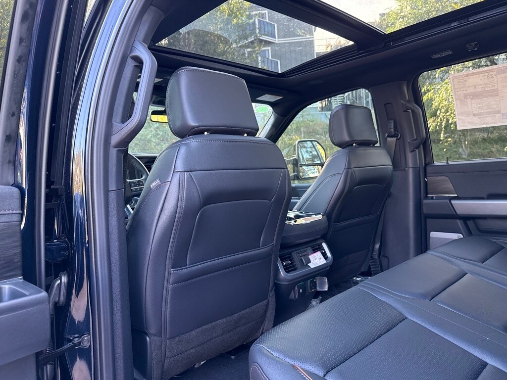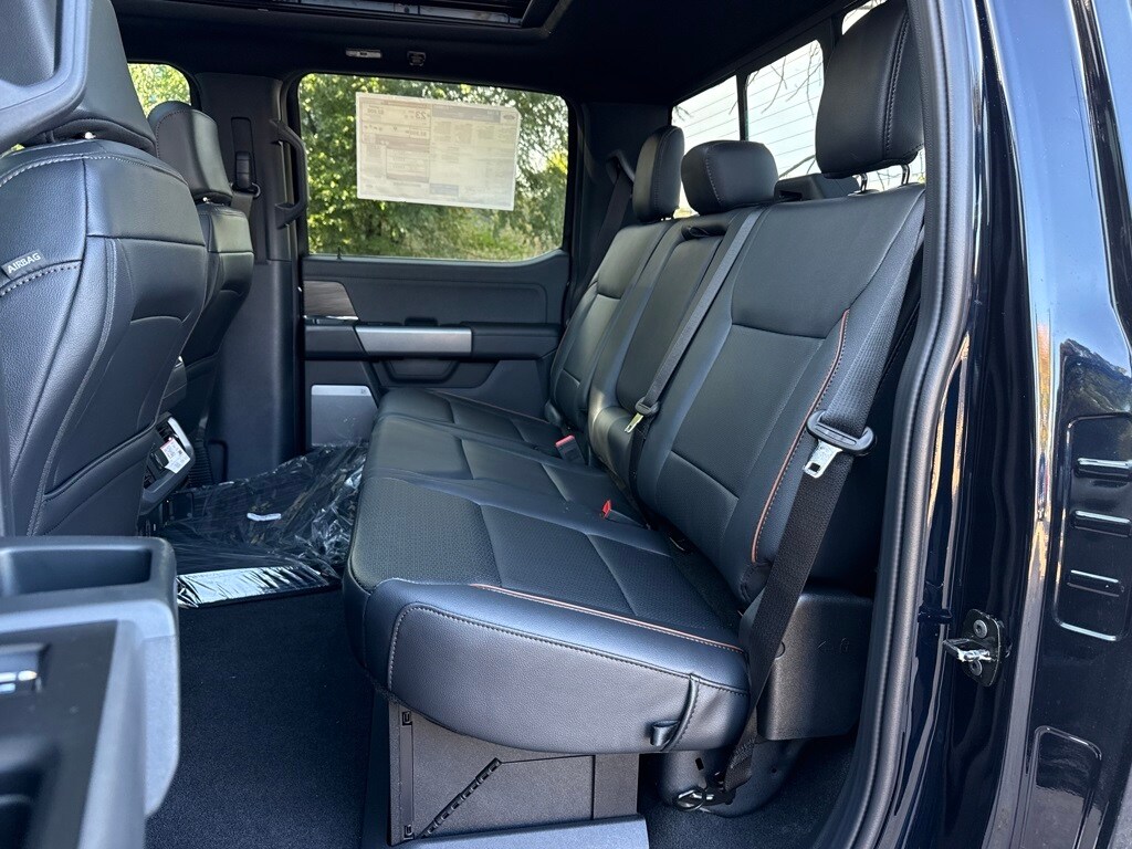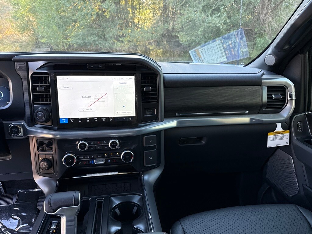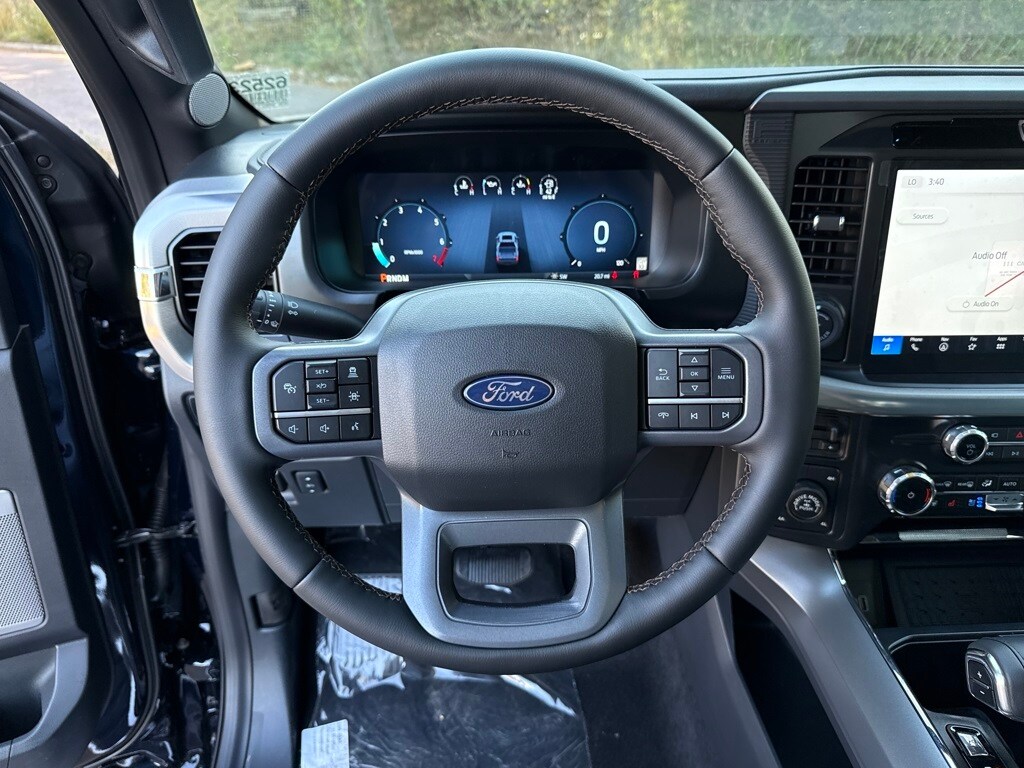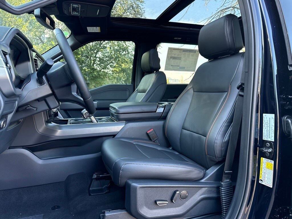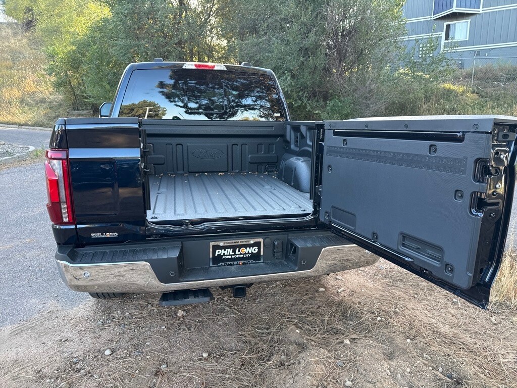 EQUIPMENT GROUP 502A HIGH Ambient Lighting - Ice Blue Color Only, Wheels: 20 Chrome-Like PVD, Radio: B&O Unleashed Sound System by Bang & Olufsen, HD Radio and 14 speakers including subwoofer, 2nd Row Heated Seats, Mobile Office Package, Wireless Charging, Partitioned Lockable Rear Storage, Console Worksurface, 6 Extended Angular Bright Anodized Step Bar, Power-Sliding Rear Window, Heads-Up Display, Illuminated Driver & Passenger Visors, covered mirrors, Tires: 275/60R20 All-Terrain, ENGINE: 3.5L POWERBOOST FULL-HYBRID V6 Pro Power Onboard 2.4KW and removes 36 gallon fuel tank, GVWR: 7,400 lbs Payload Package, Electronic Locking w/3.73 Axle Ratio, TWIN PANEL MOONROOF, TOUGH BED SPRAY-IN BEDLINER, BLUECRUISE EQUIPPED (1-YEAR PLAN) See ford.com/bluecruise for version details, Note: Select option to purchase BlueCruise hardware and 1 year of BlueCruise access at time of vehicle order, Without selecting this option, vehicle will never be capable of BlueCruise functionality, After this initial duration, customers need to purchase a subscription to continue using BlueCruise, See subscription options and pricing on ford.com/bluecruise, POWER TELESCOPING/GLASS/FOLDING TRAILER TOW MIRRORS heat, turn signal, memory, LED Sideview Mirror Spotlights, high-intensity LED security approach lamps. Ford LARIAT with Antimatter Blue exterior and Black interior features a V6 Cylinder Engine with 430 HP at 6000 RPM*.