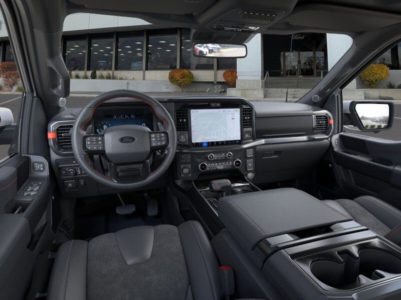 EQUIPMENT GROUP 802A RAPTOR 37 Dual Valve Shocks, Wheels: Raptor 37 Unique 17 Cast Aluminum, Bead lock capable, Carbon Fiber Interior Appliques, Modular Front Bumper, Tires: 37x12.5R17 BSW All-Terrain, GVWR: 7,400 lbs, TWIN PANEL MOONROOF, TOUGH BED SPRAY-IN BEDLINER, TRANSMISSION: ELECTRONIC 10-SPEED AUTOMATIC SelectShift w/paddle shifters and terrain management modes: normal, sport, tow-haul, slippery, rock crawl, off-road and baja (STD). Ford Raptor with Oxford White exterior and Black interior features a V6 Cylinder Engine with 450 HP at 5250 RPM*.