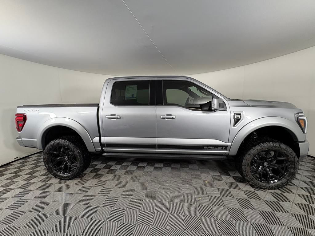 Iconic Silver Metallic 2025 Ford F-150 Lariat Shelby 4WD 10-Speed Automatic 5.0L V8 F-150 Lariat Shelby, 4D SuperCrew, 5.0L V8, 10-Speed Automatic, 4WD, Iconic Silver Metallic, Bb Black Int Premium Synthetic, ABS brakes, Alloy wheels, Compass, Electronic Stability Control, Front dual zone A/C, Heated door mirrors, Heated front seats, Illuminated entry, Low tire pressure warning, Remote keyless entry, Traction control.