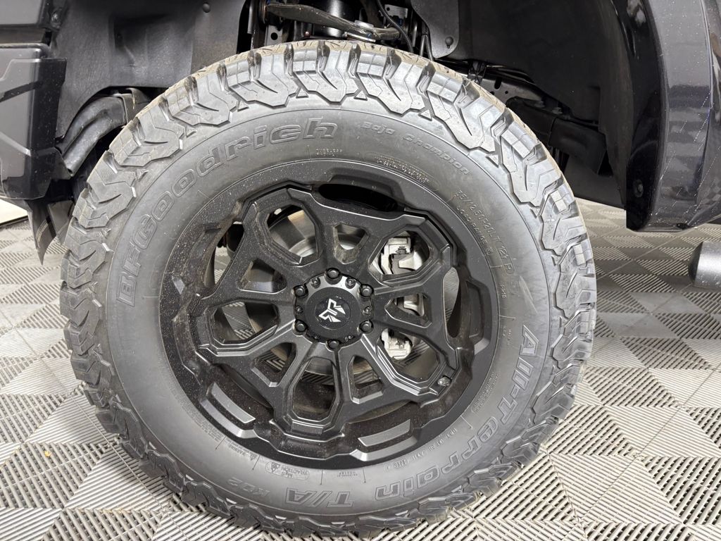 20" custom wheels (often Black Widow style) and 35" all-terrain tires