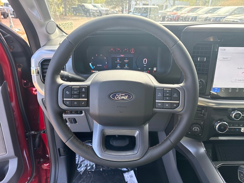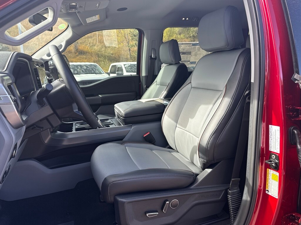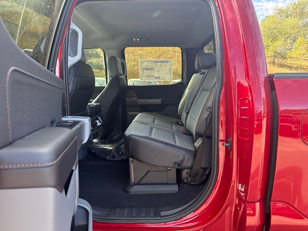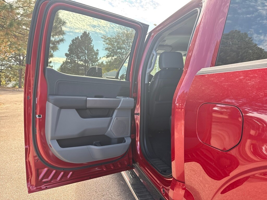 EQUIPMENT GROUP 502A HIGH Ambient Lighting - Ice Blue Color Only, Wheels: 20 Chrome-Like PVD, Radio: B&O Unleashed Sound System by Bang & Olufsen, HD Radio and 14 speakers including subwoofer, 2nd Row Heated Seats, Mobile Office Package, Wireless Charging, Partitioned Lockable Rear Storage, Console Worksurface, 6 Extended Angular Bright Anodized Step Bar, Power-Sliding Rear Window, Heads-Up Display, Illuminated Driver & Passenger Visors, covered mirrors, Tires: 275/60R20 All-Terrain, ENGINE: 3.5L POWERBOOST FULL-HYBRID V6 Pro Power Onboard 2.4KW and removes 36 gallon fuel tank, GVWR: 7,400 lbs Payload Package, Electronic Locking w/3.73 Axle Ratio, POWER TELESCOPING/GLASS/FOLDING TRAILER TOW MIRRORS heat, turn signal, memory, LED Sideview Mirror Spotlights, high-intensity LED security approach lamps. Ford LARIAT with Rapid Red Metallic Tinted Clearcoat exterior and Medium Dark Slate interior features a V6 Cylinder Engine with 430 HP at 6000 RPM*.