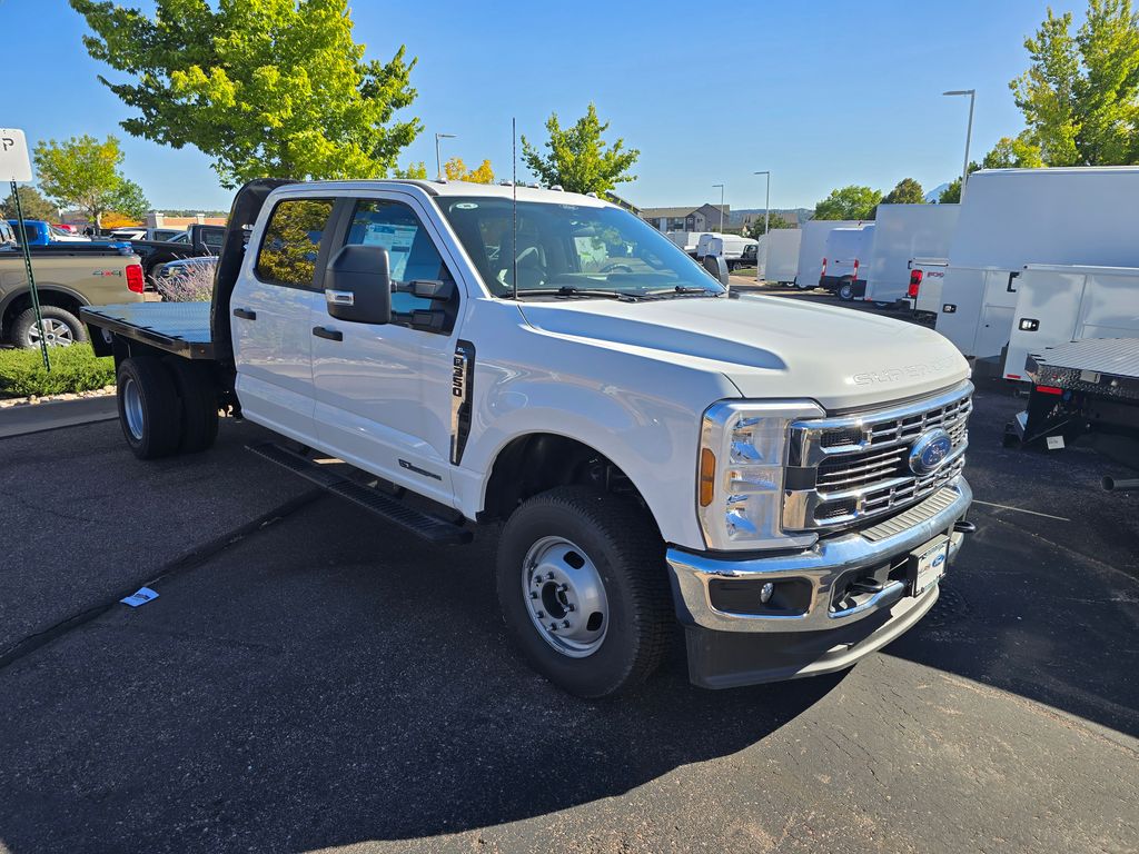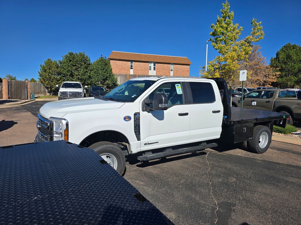 Oxford White 2025 Ford F-350SD XL DRW 4WD 10-Speed Automatic Power Stroke 6.7L V8 DI 32V OHV Turbodiesel F-350 SuperDuty XL DRW, 4D Crew Cab/Chassis, Power Stroke 6.7L V8 DI 32V OHV Turbodiesel, 10-Speed Automatic, 4WD, Oxford White, Medium Dark Slate Vinyl.