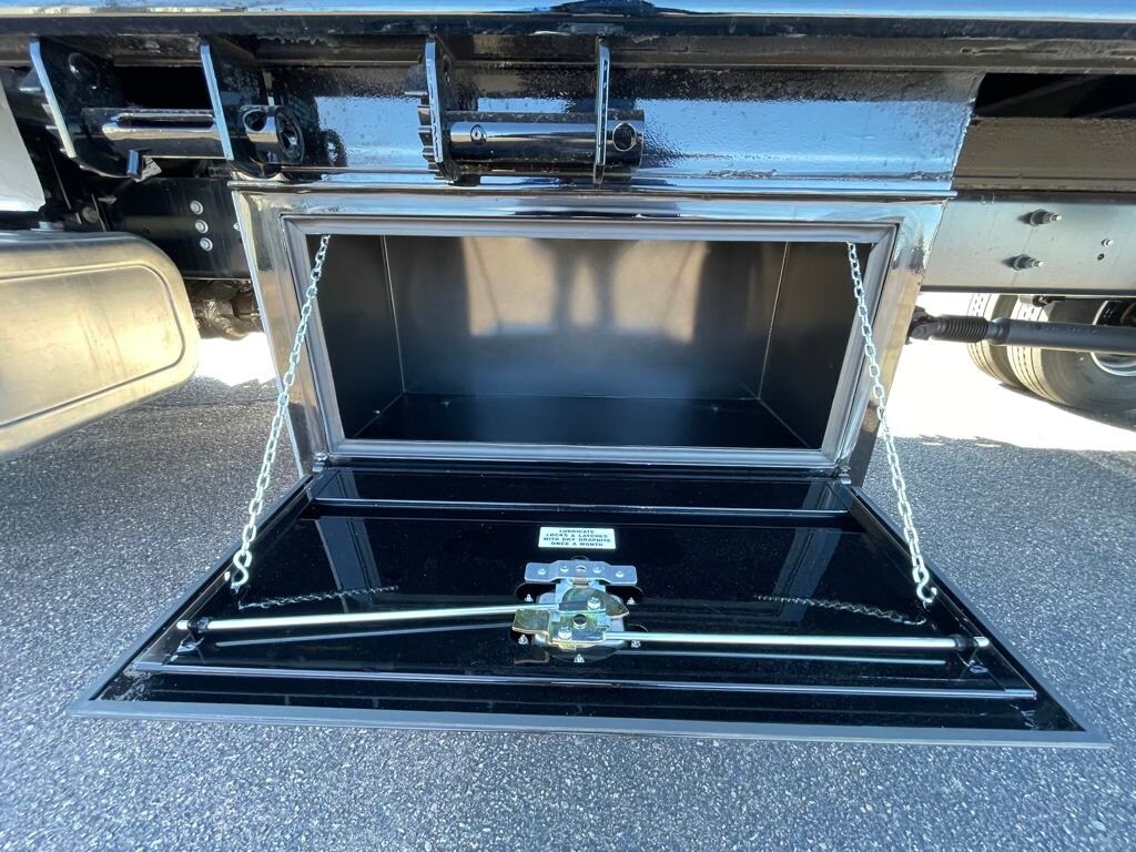 Scelzi 8'x20' flatbed with diamond plate floor decking. 2 x underbody toolboxes, sliding binder tracks. ICC bumper and hitch.
