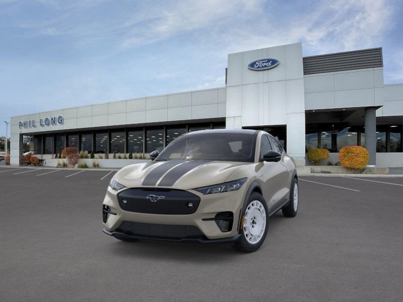 MUSTANG MACH-E RALLY GT logo is removed from the center console lid, clear paint protective film on lower body sides, Mach-E Rally Door Graphics, Replaces standard door badges, RallySport Drive Mode, Replaces unbridle extended, Oxford White Steering Wheel/Door/IP Interior Trim, Ford Performance Front Seats, exclusive debossed logos and oxford white seatback trim, Rallycross-Tuned MagneRide Damping System, Mustang Mach-E GT Performance Upgrade, Door, Wheel, Roof & Bumper Trim, Dark carbonized gray, Wheels: 19 High Gloss Oxford White, black printed graphics, Sport Pedals, Unique Raised Rear Spoiler in Dark Carbonized Gray, Black Painted Steel Roof, Front Aluminum Underbody Protective Shield, Unique Grille Shield in Dark Carbonized Gray, integrated LED fog lamps, Hood & Decklid Stripes, TRANSMISSION: SINGLE SPEED (STD). Ford GT with Desert Sand exterior and Performance Gray w/Metallic Stitching interior features a Electric Motor.