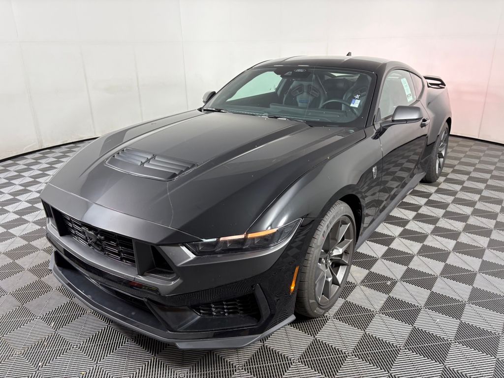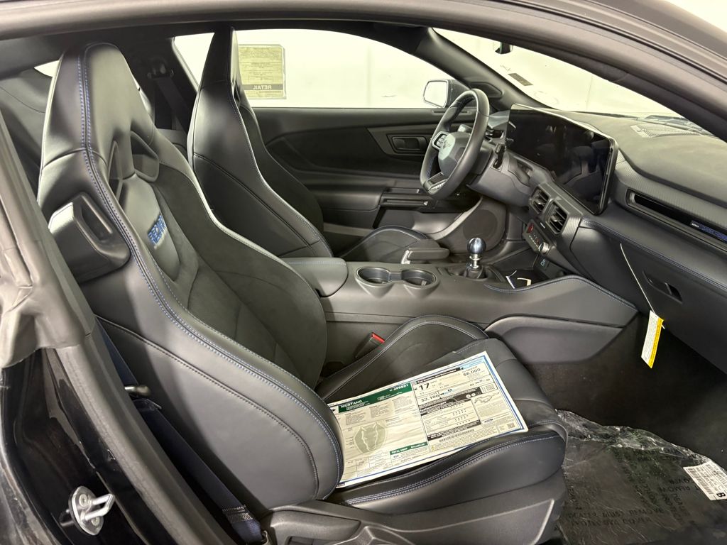Shadow Black 2025 Ford Mustang Dark Horse RWD Tremec 6-Speed Manual 4V Mustang Dark Horse, 2D Coupe, 4V, Tremec 6-Speed Manual, RWD, Shadow Black, Wa Black/Blue Premium Synthetic.
