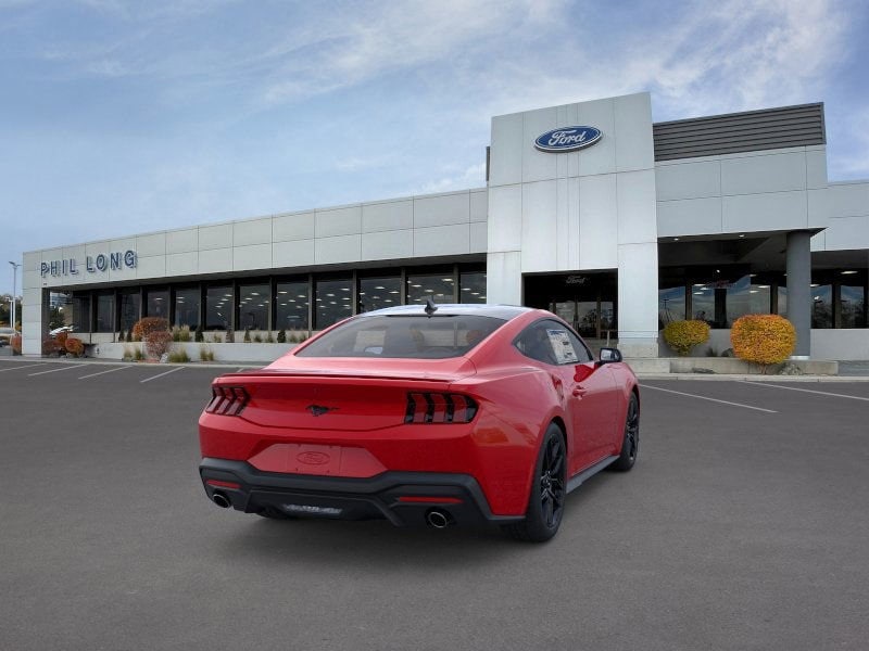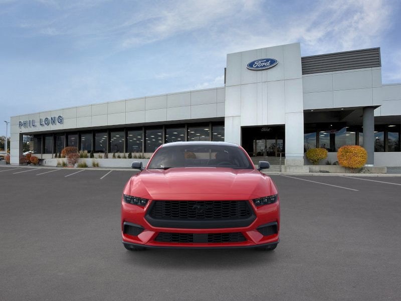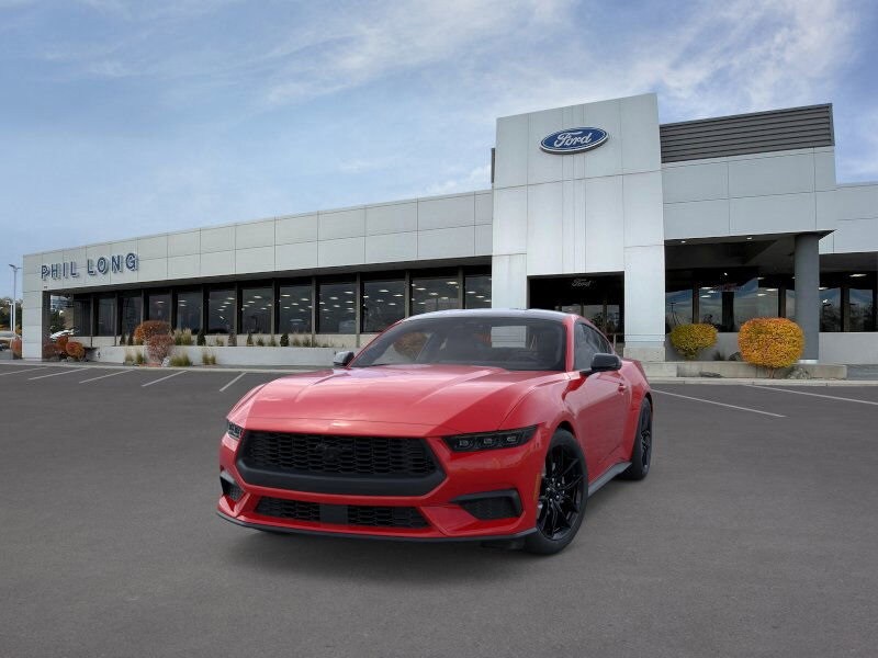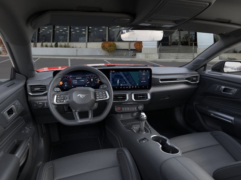 EQUIPMENT GROUP 201A HIGH PACKAGE Premier Trim w/Color Accent Group, accent stitched center console lid and shifter boot, 5-piece leather-wrapped steering wheel w/chrome bezel, unique color-accented door-trim and seat belt w/color accent stripes (black accent stripe/red background w/carmine red interior (53) or space gray accent stripe/black background w/black onyx and space gray interiors (5W/5H)), Instrument Panel w/Accent Stitch, Illuminated Door-Sill Scuff Plates, Security Package, Active Anti-Theft System, Locking Center Console, Wheel Locking Kit, Ford Co-Pilot360 Assist+, Adaptive Cruise Control w/Stop & Go, lane centering assist, intelligent speed assist and predictive speed assist, Pre-Collision Assist w/Automatic Emergency Braking, Evasive Steering Assist, Connected Navigation, MUSTANG NITE PONY PACKAGE Black Mirror Caps, Shadow Black Blade Decklid Spoiler, Wheels: 19 x 8.5 Ebony Black-Painted Aluminum, Black Front & Rear Pony Badges, Tires: 255/40R19W, Headlamps w/Black Bezels, MINI SPARE WHEEL & TIRE Replaces tire inflator and sealant kit, TRANSMISSION: 10-SPEED AUTOMATIC selectable drive modes (STD). Ford EcoBoost Premium with Race Red exterior and Black Onyx interior features a 4 Cylinder Engine with 315 HP at 5000 RPM*.