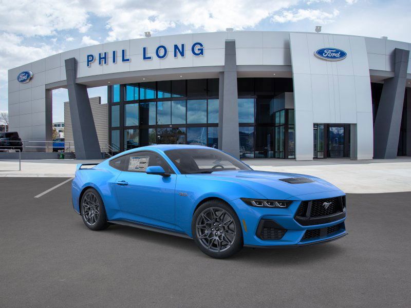 Grabber Blue Metallic 2025 Ford Mustang GT Premium RWD 10-Speed Automatic 5.0L V8 Ti-VCT Mustang GT Premium, 2D Coupe, 5.0L V8 Ti-VCT, 10-Speed Automatic, RWD, Grabber Blue Metallic, Sw Black Onyx Leather.