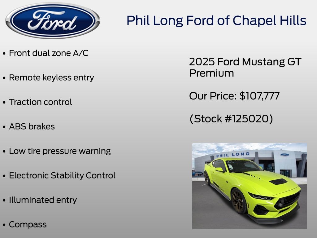 New Price! Carbonized Gray Metallic 2025 Ford Mustang GT Premium RWD 6-Speed Manual 5.0L V8 Ti-VCT Mustang GT Premium, 2D Coupe, 5.0L V8 Ti-VCT, 6-Speed Manual, RWD, Carbonized Gray Metallic, 5w Black Onyx Leather.