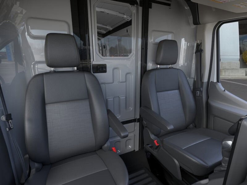 RADIO: AM/FM STEREO W/SYNC 4 12 multi-function display, Bluetooth®, dual USB ports, embedded voice recognition, connected navigation and 4 speakers (front), Electronic Air Temperature Control, LANE KEEPING SYSTEM Lane keeping system combines Blind Spot Information System (BLIS) w/lane keeping system to provide a visual warning and resistive steering torque to prevent a collision should an object be recognized in the vehicles blind spot while changing lanes, Short-Arm Pwr-Folding Heated Pwr Adjusting Mirrors, turn signals, SIDE SENSING SYSTEM Works similar to the reverse sensing system, as it sounds a tone when the vehicle gets close to surrounding vehicles and other objects, Front Sensing System, Front Fog Lamps, Auxiliary lamps that are generally integrated into the front fascia and designed to help illuminate the roadway during poor visibility, Reverse Sensing System, PASSENGER RUNNING BOARDS Covers the B-C pillar passenger-side, TRANSMISSION: 10-SPD AUTOMATIC W/OD & SELECTSHIFT auxiliary transmission oil cooler (STD). Ford Transit Cargo Van with Oxford White exterior and Dark Palazzo Gray interior features a V6 Cylinder Engine with 275 HP at 6250 RPM*.