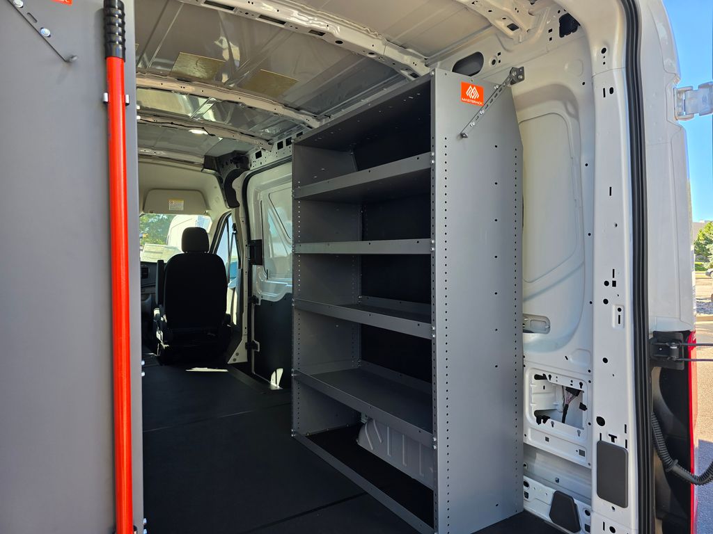 This upfitted Ford Transit van features a Master Rack shelving system for ultimate organization and an added bulkhead for safety. Also equipped with a roof mounted, drop-down ladder rack for added convenience. It's the perfect mobile workshop, designed to save you time and keep you productive on every job.