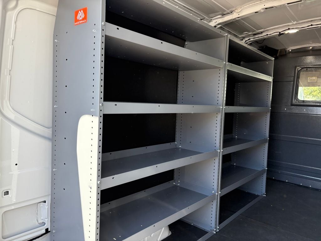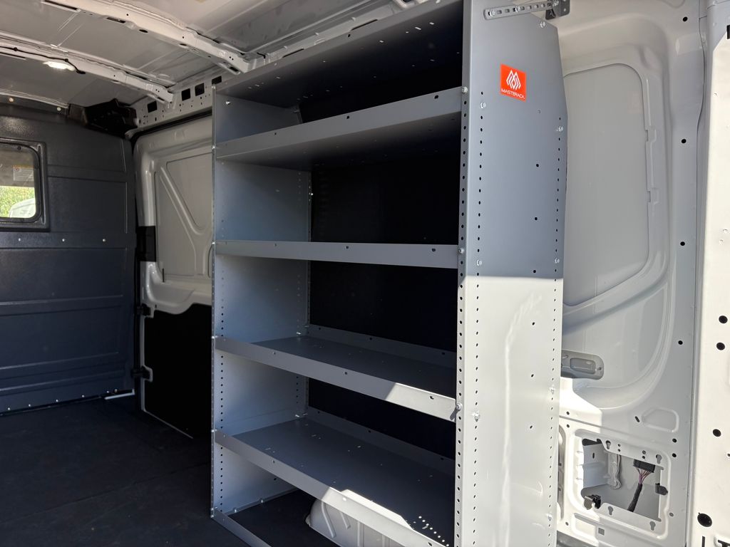 This upfitted Ford Transit van features a Master Rack shelving system for ultimate organization and an added bulkhead for safety. Equipped with a drop-down, roof mounted ladder rack for added convenience. It's the perfect mobile workshop, designed to save you time and keep you productive on every job.