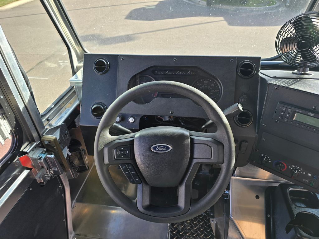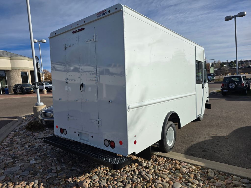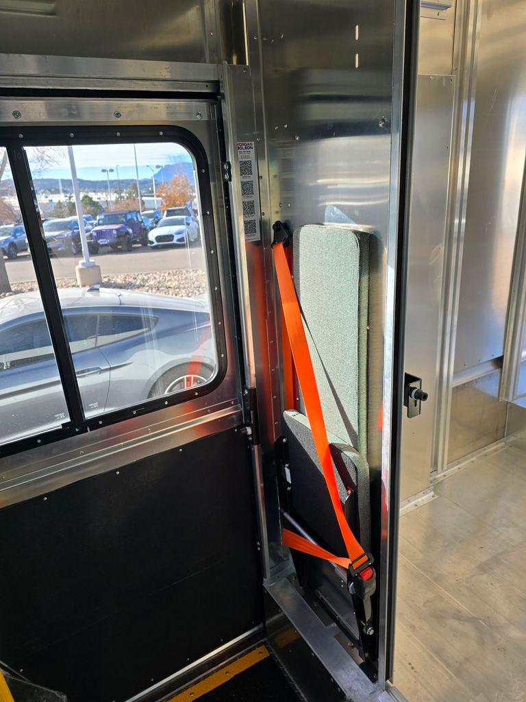 This 2026 Ford E350 is equipped with a Morgan Olson Route Star walk-in van body, purpose-built for last-mile delivery and service applications. The 11'4" cargo area features an 85" interior height and 93" interior width, providing spacious and accessible storage. The upfit includes a comprehensive lighting package with LED dome lamps in both the cab and cargo area, LED marker and tail lights, and a backup camera system with a 7-inch monitor. The cab is appointed with a high-back driver's bucket seat and a bulkhead-mounted jumpseat, both with orange seat belts, along with a West Coast stainless steel mirror package. Exterior features include a 9-inch steel front bumper, a 12-inch deep shock-absorbing rear bumper with grating surface, an aluminum tilt hood, and rubber fenders at the rear wheel cutouts. The body is constructed with durable .102 aluminum side panels and a smooth aluminum floor, and includes thoughtful details such as flush-mounted fuel fill doors, waste baskets in the stepwells, anodized aluminum grab handles, and undercoating for added protection.