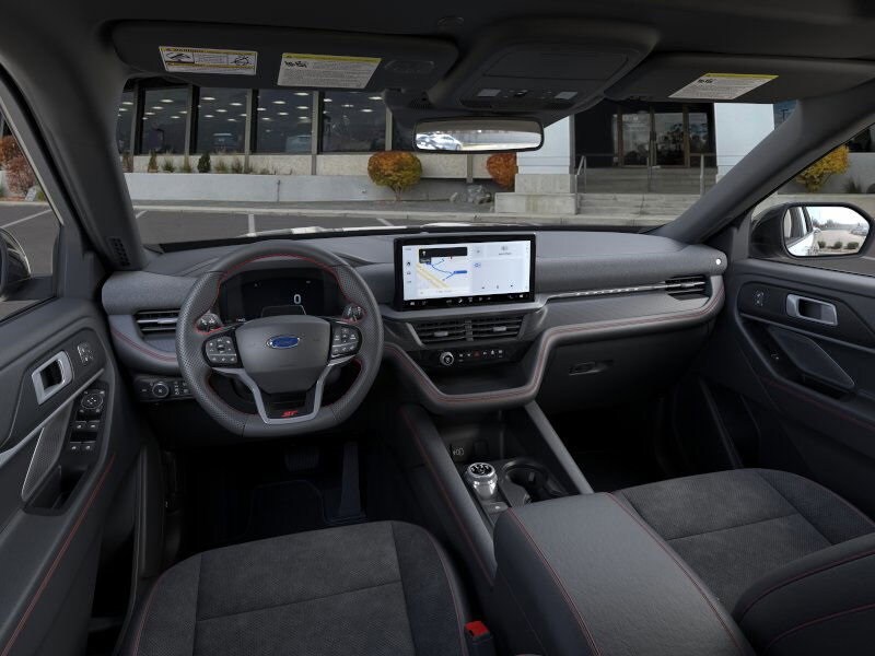 SUN AND SOUND PACKAGE Panoramic Fixed Glass Roof w/Power Shade, Remote Control Front Windows, Opens front windows from outside of the vehicle via the key fob, Multicontour Seats w/Front Active Motion, Front only, Radio: B&O Sound System by Bang & Olufsen w/51G, 980 watt and 14 speakers including subwoofer, 18 SPARE WHEEL & JACK KIT 18 spare tire, TRANSMISSION: 10-SPEED AUTOMATIC SelectShift capability w/paddle shifters (STD). Ford ST with Agate Black exterior and Onyx interior features a V6 Cylinder Engine with 400 HP at 5500 RPM*.