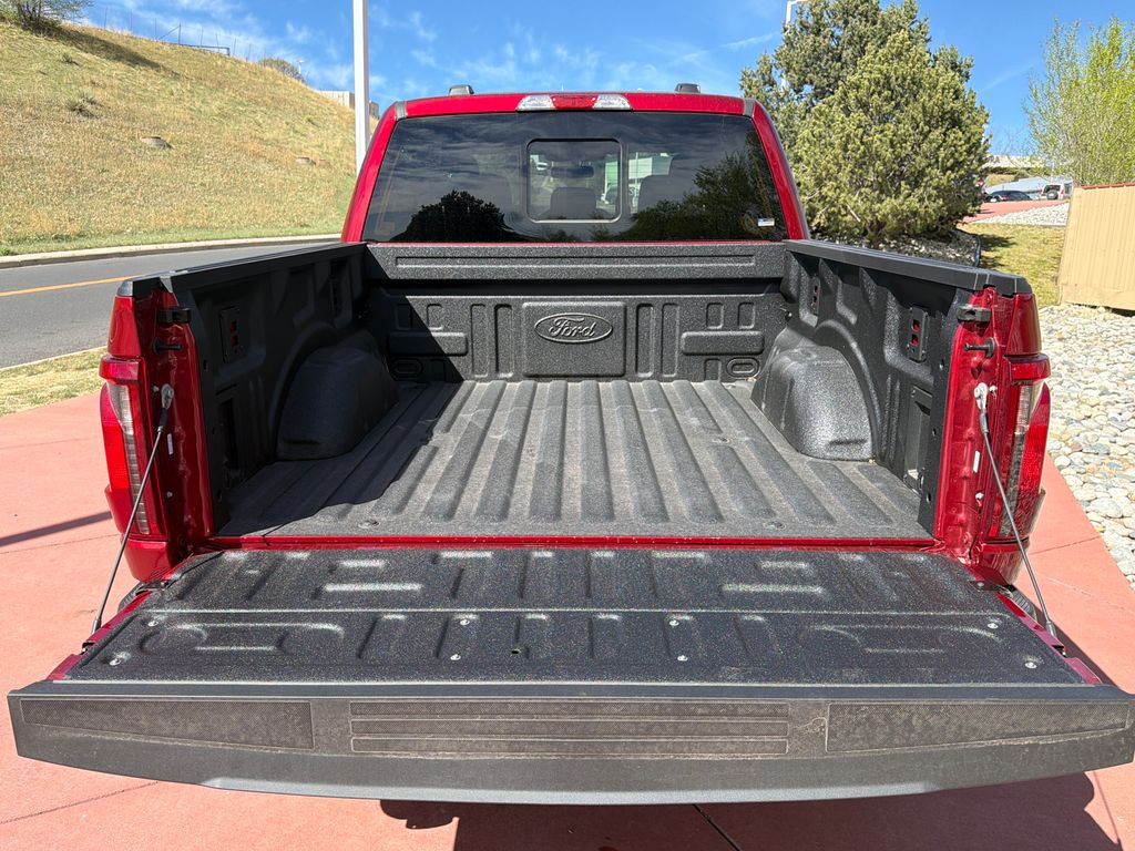 EQUIPMENT GROUP 302A MID Wrapped Steering Wheel, Intelligent Access w/Push Button Start, approach detection, 400W Pro Power Onboard (Cab & Bed), Dual-Zone Electronic Automatic Temperature Control, (DEATC), Power-Sliding Rear Window, Body-Color Door Handles, Remote Start System w/Remote Tailgate Release, Heated Front Seats, Chrome Front & Rear Bumpers, Ford Co-Pilot360 Assist 2.0, AEB oncoming, Adaptive Cruise Control w/Stop & Go, lane centering and predictive speed assist, 360 Degree Camera, Front Parking Sensors, Towing Technology, pro trailer back up assist and pro trailer hitch assist, Power Glass Heated Sideview Mirrors, manual-folding, turn signals, high-intensity LED security approach lamps, LED sideview mirror spotlights and chrome skull caps, Auto-Dimming Rearview Mirror, ENGINE: 3.5L V6 ECOBOOST auto start-stop technology, 3.31 Axle Ratio, GVWR: 7,100 lbs Payload Package, XLT BLACK APPEARANCE PACKAGE PLUS Black Grille, Gray Box Side Decal, Black Exterior Badging, 6 Black Running Boards, Wheels: 20 Gloss Black Painted Aluminum, Tires: 275/60R20 BSW Automatic Transmission, Body-Color Front & Rear Bumpers, Body-Color Door Handles, Dual Exhaust w/Black Tips, Dark Interior Appliques, TOUGH BED SPRAY-IN BEDLINER, BLUECRUISE (EQUIPMENT + 1 YEAR + 90-DAY PLAN) See ford.com/bluecruise for version details, Note: Select option to purchase BlueCruise hardware and 1 year and 90 days of BlueCruise access at time of vehicle order, Without selecting this option, or the one-time purchase of BlueCruise by selecting (522) at time of vehicle order, vehicle will never be capable of BlueCruise functionality, After this initial duration, customers need to purchase a subscription to continue using BlueCruise, See subscription options and pricing on ford.com/bluecruise, ELECTRONIC LOCKING W/3.55 AXLE RATIO, TRANSMISSION: ELECTRONIC 10-SPEED AUTOMATIC SelectShift w/progressive range select and selectable drive modes: normal, ECO, sport, tow/haul, slippery, deep snow/sand and mud/rut (STD), TRAY STYLE FLOOR LINER W/CARPET MATS. Ford XLT with Ruby Red Metallic Tinted Clearcoat exterior and Black interior features a V6 Cylinder Engine with 325 HP at 5000 RPM*.