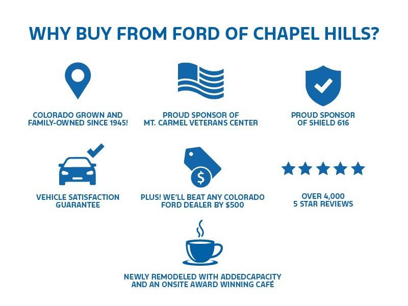 Only Ford Dealer in Colorado to be a Back to Back Top 100 Ford Dealer and Presidents Award Dealer!!! When you invest in Ford, you know your vehicle will be made of leading technology and engineering design. A wide lineup range: When you choose Ford, you're not just choosing one type of vehicle. Ford's lineup is wide-ranging and diverse, containing green-friendly sedans up to rugged pickup trucks. Ford has a long history of innovation and is known for setting industry standards. Ford vehicles feature cutting-edge technology like driver-assist technologies, Ford's SYNC infotainment system, and hybrid and electric powertrains. Ford is committed to creating eco-friendly vehicles and reducing greenhouse gas emissions. Ford has a large fleet of hybrid vehicles and is working to increase the fuel economy of all its vehicles. Ford vehicles often maintain strong resale values, reflecting their quality and enduring appeal. The Ford F-150, as America's best-selling pickup truck for decades, exemplifies this trend, making it a sound investment for buyers. Purchasing a Ford combines reliability, versatility, advanced technology, and strong resale value, supported by a robust network of dealerships and service centers.