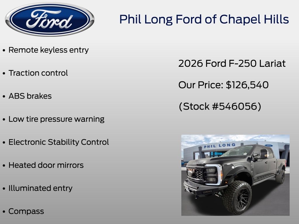 Agate Black Metallic 2026 Ford F-250SD Lariat 4WD 10-Speed Automatic 6.7L High Output Power Stroke V8 Diesel F-250 SuperDuty Lariat, 4D Crew Cab, 6.7L High Output Power Stroke V8 Diesel, 10-Speed Automatic, 4WD, Agate Black Metallic, 5b Black Onyx Premium Synthetic.
