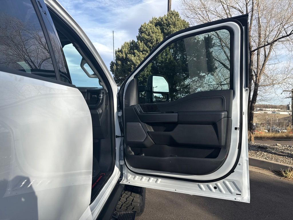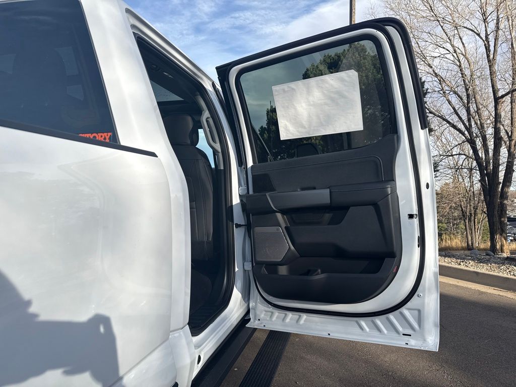 BLACK APPEARANCE PACKAGE front and rear black Ford ovals, box side decal (4x4, FX4 or Tremor) and ebony black fender vent surround dark fender badge, Rear Wheel Well Liners, Black Painted Front Grille Surround, Ebony Black Painted Mirror Caps, Tough Bed Spray-In Bedliner, tailgate-guard, black box bed tie-down hooks and black bed attachment bolts, Body Color Front & Rear Bumpers, Wheels: 20 Ebony Black High Gloss, Black premium painted aluminum, gloss black hub cover/center ornament, Tires: LT275/65Rx20E BSW Automatic Transmission, Spare may not be the same as road tire, 6 Ebony Black Angular Running Boards, LARIAT ULTIMATE PACKAGE Tailgate Step & Handle, Head-Up Display, 4-Way Adjustable Headrests, Power-Deployable Running Boards, Radio: B&O Unleashed Sound System by Bang & Olufsen, HD Radio w/14 speakers including subwoofer, LARIAT PREMIUM PACKAGE lane departure warning, Pro Trailer Hitch Assist, Ford Co-Pilot 360 Assist 2.0, rear view camera and reverse brake assist, Pre-Collision Assist, Automatic Emergency Braking (AEB), pedestrian detection, forward collision warning, dynamic brake support and intersection assist, Post-Collision Braking, Lane-Keeping System, lane-keeping alert, lane-keeping aid and driver alert, Front & Rear Parking Sensors, Automatic High Beam, Adaptive Cruise Control w/Stop-and-Go, lane centering and predictive speed assist, Power-Sliding Rear-Window w/Defrost, Pro Trailer Backup Assist, trailer reverse guidance, TWIN PANEL POWER MOONROOF map lights and moonroof switches, SECURICODE KEYLESS ENTRY KEYPAD (DRIVERS SIDE) Integrated into the B-pillar, ELECTRONIC-LOCKING W/3.55 AXLE RATIO, TRANSMISSION: TORQSHIFT 10-SPEED AUTOMATIC SelectShift and selectable drive modes: normal, eco, slippery roads, tow/haul and off-road. Ford LARIAT with Oxford White exterior and Black Onyx interior features a 8 Cylinder Engine with 405 HP at 5000 RPM*.