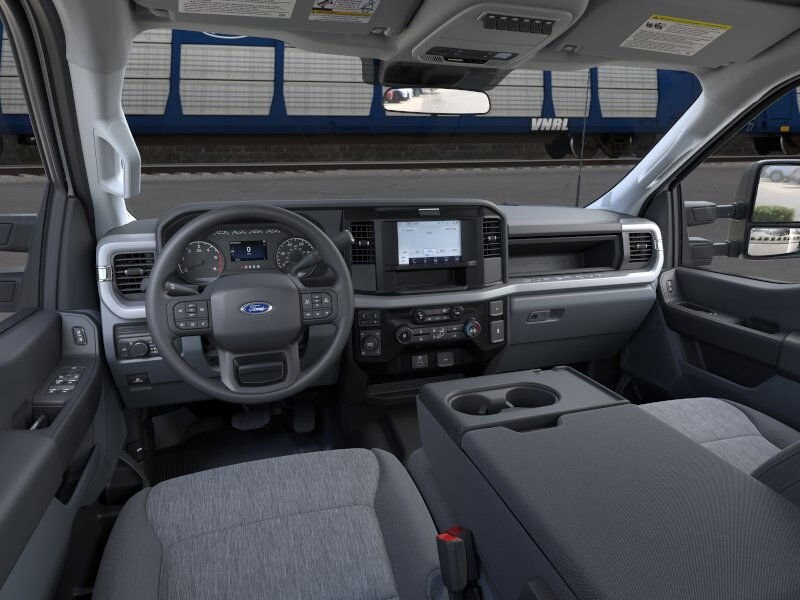 Ford Connectivity Package (1-Year Included), GVWR: 11,300 lb Payload Package, Internet access capable: 5G Modem - Ford Connectivity Package, 4WD, 350 Amp Dual Alternators, 4-Wheel Disc Brakes, 6 Speakers, ABS brakes, Air Conditioning, AM/FM radio, AM/FM Stereo w/MP3 Player, Brake assist, Center High-Mounted Stop Lamp (CHMSL), Cloth 40/20/40 Split Bench Seat, Compass, Delay-off headlights, Dual front impact airbags, Dual front side impact airbags, Electronic Stability Control, Electronic-Locking w/4.30 Axle Ratio, Emergency communication system: SYNC 4 911 Assist, Exterior Backup Alarm (Pre-Installed), Front anti-roll bar, Front Center Armrest w/Storage, Front License Plate Bracket, Front reading lights, Fully automatic headlights, Heated door mirrors, Illuminated entry, Low tire pressure warning, Outside temperature display, Overhead airbag, Overhead console, Panic alarm, Passenger cancellable airbag, Passenger vanity mirror, Power door mirrors, Power steering, Power windows, Rear anti-roll bar, Rear View Camera & Prep Kit, Remote keyless entry, Security system, Speed control, Split folding rear seat, Steering wheel mounted audio controls, SYNC 4 Communication & Entertainment System, Tachometer, Telescoping steering wheel, Tilt steering wheel, Traction control, Trip computer, Turn signal indicator mirrors, and Variably intermittent wipers.
