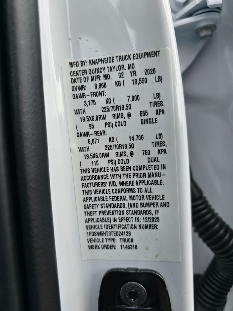 Oxford White 2026 Ford F-550SD XL DRW 4WD 10-Speed Automatic Power Stroke 6.7L V8 DI 32V OHV Turbodiesel F-550 SuperDuty XL DRW, 4D Crew Cab/Chassis, Power Stroke 6.7L V8 DI 32V OHV Turbodiesel, 10-Speed Automatic, 4WD, Oxford White, As Vinyl 40/20/40 Seats Medium Dark Slate Vinyl.
