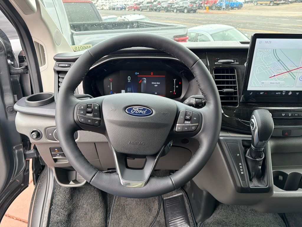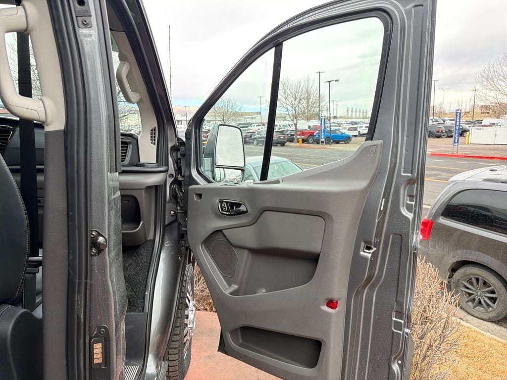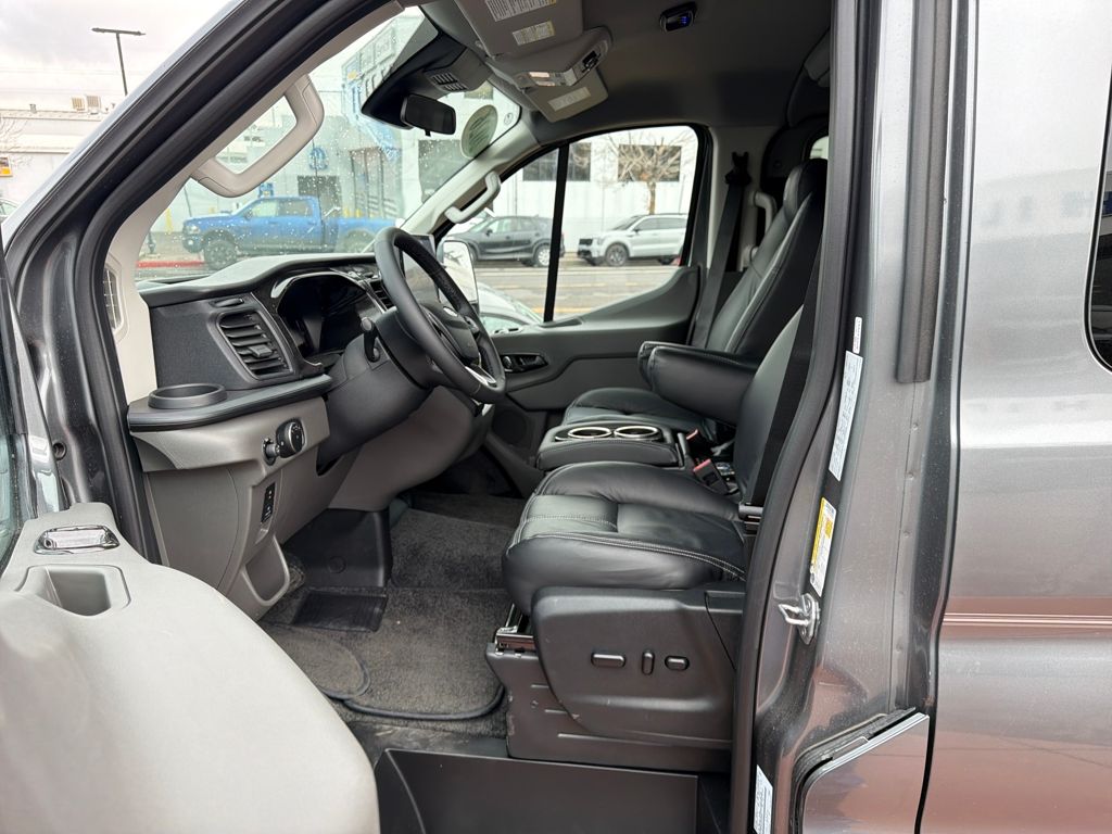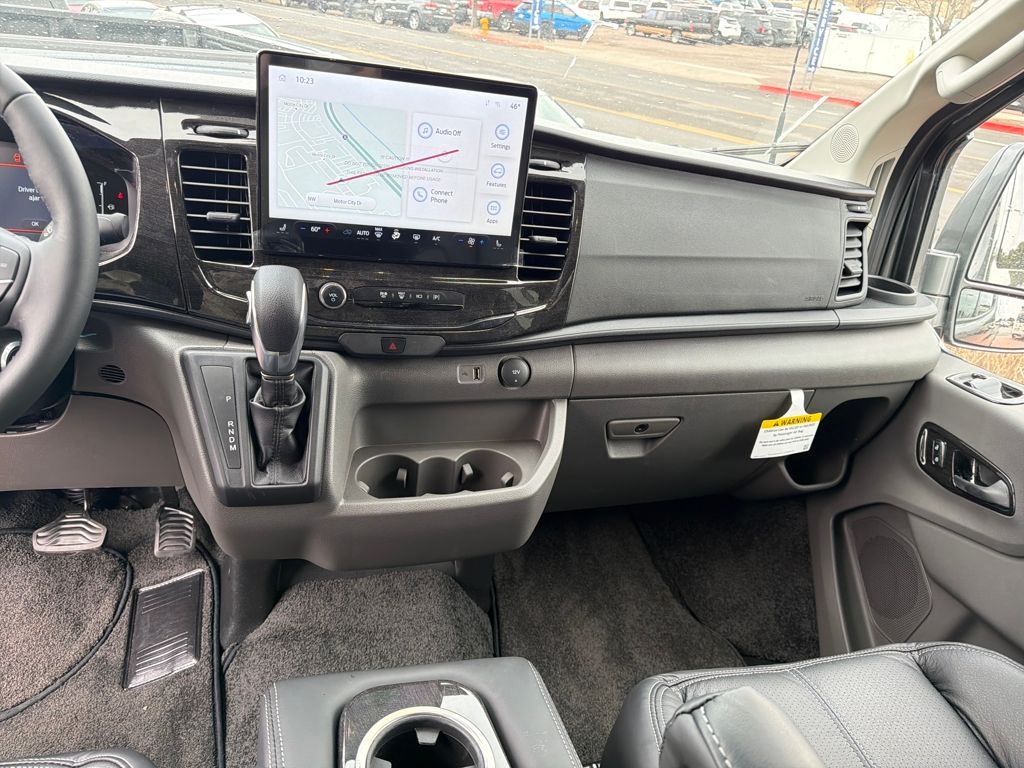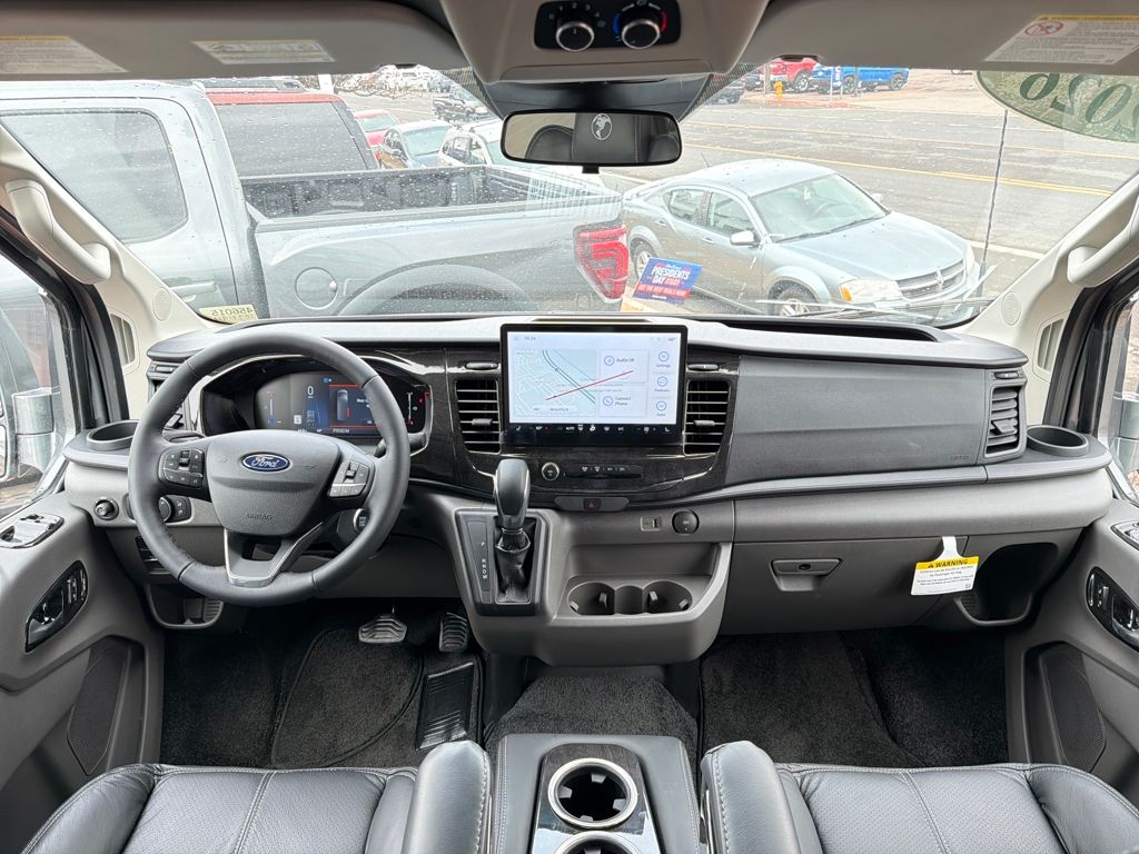 ENGINE: 3.5L ECOBOOST V6, DARK PALAZZO GRAY CLOTH HEATED BUCKET SEATS 10-way power driver seat w/lumbar, 10-way power passenger seat w/lumbar and driver and passenger armrest, DRIVER CONTROLLED FRONT/REAR AUX A/C & HEATER Heat is distributed from rear of front-passenger seat, A/C is distributed from the rear of van, PRIVACY GLASS Provides protection of vehicle occupant(s) and occupant personal belongings, The glass also provides occupant comfort by helping to reduce vehicle cool-down time, Rear-Window Defroster, HEAVY-DUTY TRAILER TOW PACKAGE Deletes rear tow hook, 4/7 pin connector assembly and rear jumper and relay system for backup/B+/running lights, This package does not include a Trailer Brake Controller (TBC) (67D), Additionally, this option must be added at time of ordering, Neither a Ford or aftermarket trailer brake controller can be added later (after vehicle is built), Frame Mounted Hitch Receiver, Tow/Haul Mode w/Trailering Wiring Provisions, BLACK HIGH-INTENSITY DISCHARGE (HID) HEADLAMPS LED signature surround, HID headlamps emit a brighter, more natural light than halogen headlamps, which can help improve visibility, 3.73 LIMITED-SLIP AXLE RATIO, BODY COLORED FRONT BUMPER Body colored front bumpers are offered in every exterior color, The front bumper will match the exterior color, Front Fog Lamps, Auxiliary lamps that are generally integrated into the front fascia and designed to help illuminate the roadway during poor visibility, TRANSMISSION: 10-SPD AUTOMATIC W/OD & SELECTSHIFT auxiliary transmission oil cooler (STD). Ford Transit Cargo Van with Carbonized Gray exterior and Dark Palazzo Gray interior features a V6 Cylinder Engine with 300 HP at 5000 RPM*.