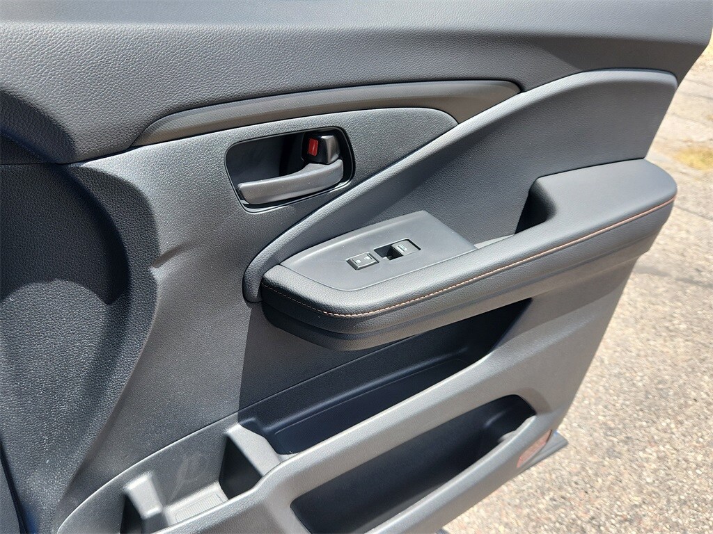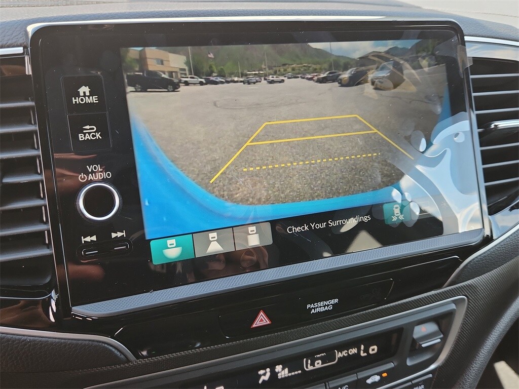 Navigation, Moonroof, All Wheel Drive, Rear Air, Heated Driver Seat, Back-Up Camera, Satellite Radio, iPod/MP3 Input, Onboard Communications System, Trailer Hitch, Aluminum Wheels, Remote Engine Start, Dual Zone A/C, Apple CarPlay®, Cross-Traffic Alert Honda TrailSport with Diffused Sky Blue Pearl exterior and Black w/ Orange Stitching interior features a V6 Cylinder Engine with 280 HP at 6000 RPM*. MP3 Player, Privacy Glass, Keyless Entry, Steering Wheel Controls, Child Safety Locks.