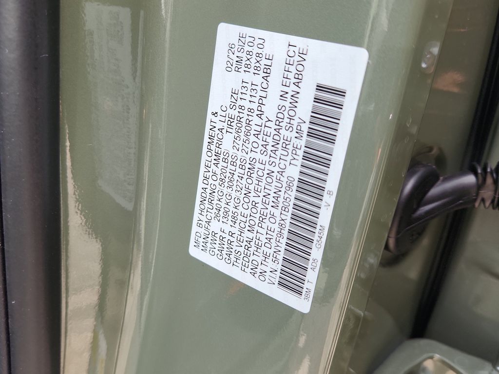 - 5FNYF9H8XTB057960