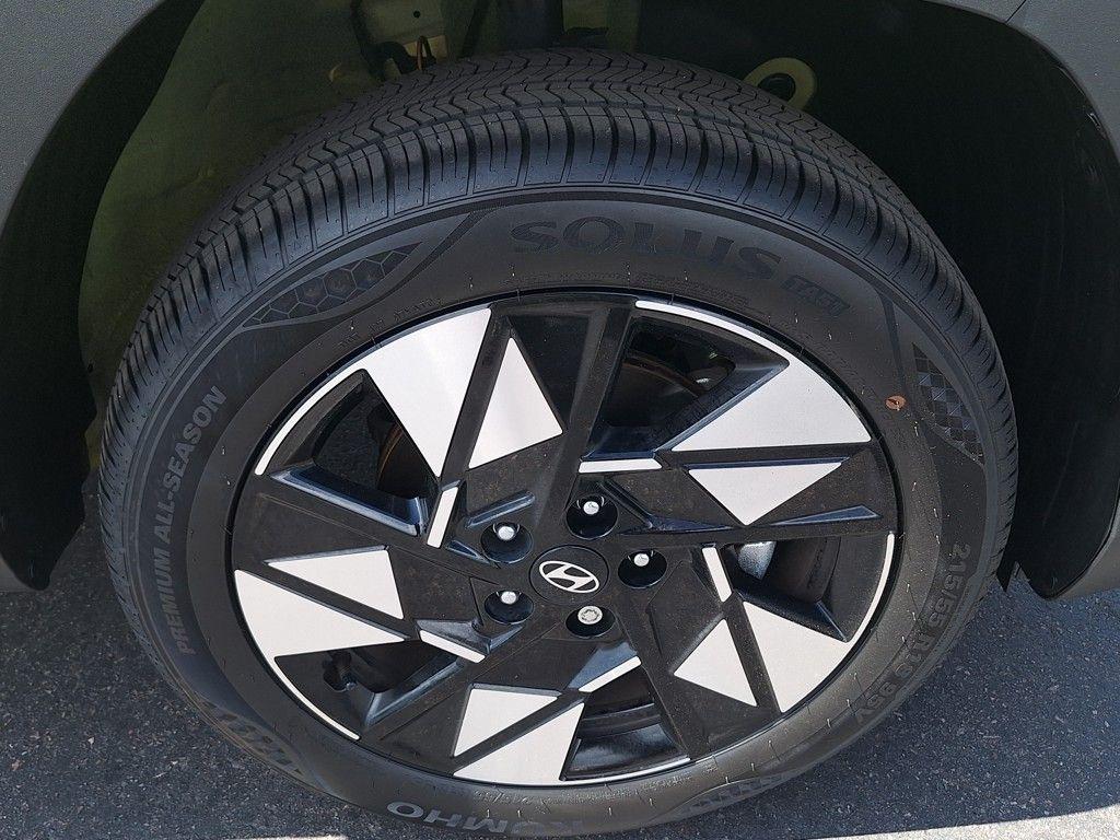 Option Group 01, 4-Wheel Disc Brakes, 6 Speakers, 6.052 Axle Ratio, ABS brakes, Air Conditioning, Alloy wheels, AM/FM radio: SiriusXM, Apple CarPlay & Android Auto, Auto High-beam Headlights, Automatic temperature control, Brake assist, Bumpers: body-color, Cargo Net, Cargo Tray, Carpeted Floor Mats, Cloth Seat Trim, Cross Rails, Delay-off headlights, Driver door bin, Driver vanity mirror, Dual front impact airbags, Dual front side impact airbags, Electronic Stability Control, Emergency communication system: Bluelink+, Exterior Parking Camera Rear, Four wheel independent suspension, Front anti-roll bar, Front Bucket Seats, Front Center Armrest, Front dual zone A/C, Front reading lights, Fully automatic headlights, Heated door mirrors, Illuminated entry, Leather Shift Knob, Leather steering wheel, Low tire pressure warning, Occupant sensing airbag, Outside temperature display, Overhead airbag, Panic alarm, Passenger door bin, Passenger vanity mirror, Power door mirrors, Power driver seat, Power steering, Power windows, Radio: AM/FM/HD Radio/SiriusXM Audio System, Rear anti-roll bar, Rear seat center armrest, Rear window defroster, Rear window wiper, Remote keyless entry, Security system, Speed control, Speed-sensing steering, Split folding rear seat, Spoiler, Steering wheel mounted audio controls, Tachometer, Telescoping steering wheel, Tilt steering wheel, Traction control, Trip computer, Turn signal indicator mirrors, Variably intermittent wipers, and Wheels: 18" x 7.0J Glossy Black Alloy.