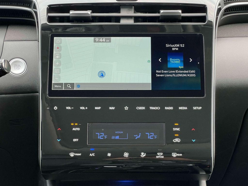 Convenience Package (10.25" Digital Instrument Cluster, 10.25" Navigation System (AVNT), Ambient Interior Lighting, Auto-Dimming Interior Mirror, Dual Automatic Temperature Control, Dynamic Voice Recognition, H-Tex Seat Trim, Leather-Wrapped Shift Knob, Leather-Wrapped Steering Wheel, LED Interior Lights (Room, Map), LED Taillights, Option Group 02, Power Sunroof, Radio: AM/FM/HD Audio System (P2), Side Mirrors w/Turn Signal Indicators, Ultrasonic Rear Occupant Alert, and Wheels: 19" x 7.5J" Machine-Face Finish Alloy), AWD, 3.648 Axle Ratio, 4-Wheel Disc Brakes, 6 Speakers, ABS brakes, Air Conditioning, All Season Fitted Liners, Alloy wheels, AM/FM radio: SiriusXM, Apple CarPlay & Android Auto, Auto High-beam Headlights, Automatic temperature control, Brake assist, Bumpers: body-color, Cargo Net, Cargo Tray, Carpeted Floor Mats, Delay-off headlights, Driver door bin, Driver vanity mirror, Dual front impact airbags, Dual front side impact airbags, Electronic Stability Control, Emergency communication system: Blue Link Connected Car Service (3-year complimentary subscription), Exterior Parking Camera Rear, First Aid Kit, Four wheel independent suspension, Front anti-roll bar, Front Bucket Seats, Front Center Armrest, Front dual zone A/C, Front reading lights, Fully automatic headlights, Heated door mirrors, Heated Front Bucket Seats, Heated front seats, Illuminated Door Sills, Illuminated entry, Low tire pressure warning, Occupant sensing airbag, Outside temperature display, Overhead airbag, Overhead console, Panic alarm, Passenger door bin, Passenger vanity mirror, Power door mirrors, Power driver seat, Power Liftgate, Power steering, Power windows, Radio data system, Radio: AM/FM/HD Audio System, Rear anti-roll bar, Rear seat center armrest, Rear side impact airbag, Rear window defroster, Rear window wiper, Remote keyless entry, Roof rack: rails only, Security system, Speed control, Split folding rear seat, Spoiler, Stain & Odor Resistant Cloth Seat Trim, Steering wheel mounted audio controls, Tachometer, Telescoping steering wheel, Tilt steering wheel, Traction control, Trip computer, Variably intermittent wipers, Wheel Locks, and Wheels: 17" x 7.0J" Alloy.