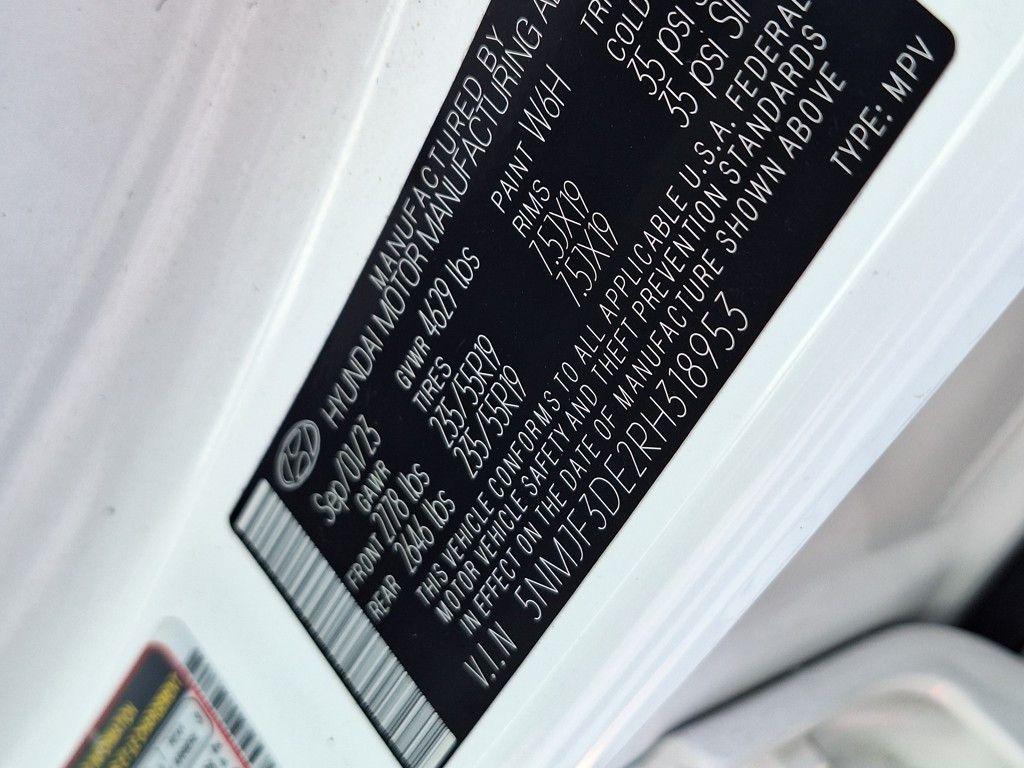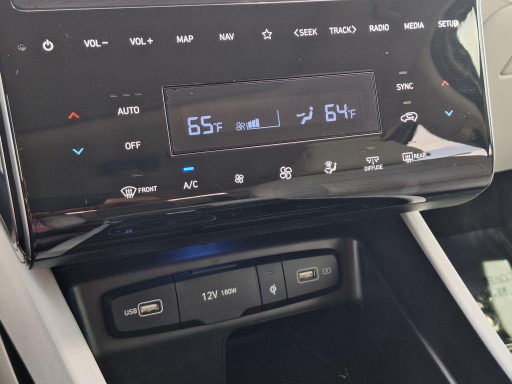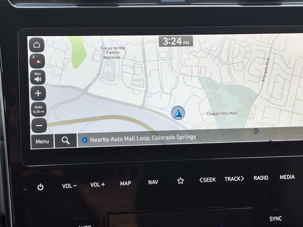 Convenience Package (10.25" Digital Instrument Cluster, 10.25" Navigation System (AVNT), Ambient Interior Lighting, Auto-Dimming Interior Mirror, Dual Automatic Temperature Control, Dynamic Voice Recognition, H-Tex Seat Trim, Leather-Wrapped Shift Knob, Leather-Wrapped Steering Wheel, LED Interior Lights (Room, Map), LED Taillights, Option Group 02, Power Sunroof, Radio: AM/FM/HD Audio System (P2), Side Mirrors w/Turn Signal Indicators, Ultrasonic Rear Occupant Alert, and Wheels: 19" x 7.5J" Machine-Face Finish Alloy), 3.648 Axle Ratio, 4-Wheel Disc Brakes, 6 Speakers, ABS brakes, Air Conditioning, Alloy wheels, AM/FM radio: SiriusXM, Apple CarPlay & Android Auto, Auto High-beam Headlights, Automatic temperature control, Brake assist, Bumpers: body-color, Cargo Net, Cargo Tray, Carpeted Floor Mats, Delay-off headlights, Driver door bin, Driver vanity mirror, Dual front impact airbags, Dual front side impact airbags, Electronic Stability Control, Emergency communication system: Blue Link Connected Car Service (3-year complimentary subscription), Exterior Parking Camera Rear, First Aid Kit, Four wheel independent suspension, Front anti-roll bar, Front Bucket Seats, Front Center Armrest, Front dual zone A/C, Front reading lights, Fully automatic headlights, Heated door mirrors, Heated Front Bucket Seats, Heated front seats, Illuminated entry, Low tire pressure warning, Occupant sensing airbag, Outside temperature display, Overhead airbag, Overhead console, Panic alarm, Passenger door bin, Passenger vanity mirror, Power door mirrors, Power driver seat, Power Liftgate, Power steering, Power windows, Radio data system, Radio: AM/FM/HD Audio System, Rear anti-roll bar, Rear seat center armrest, Rear side impact airbag, Rear window defroster, Rear window wiper, Remote keyless entry, Roadside Assistance Kit, Roof rack: rails only, Security system, Speed control, Split folding rear seat, Spoiler, Stain & Odor Resistant Cloth Seat Trim, Steering wheel mounted audio controls, Tachometer, Telescoping steering wheel, Tilt steering wheel, Tow Hitch, Traction control, Trip computer, Variably intermittent wipers, and Wheels: 17" x 7.0J" Alloy.