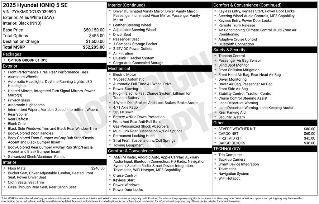 Atlas White 2025 Hyundai IONIQ 5 SE AWD 1-Speed Automatic Electric Motor 110/87 City/Highway MPG
