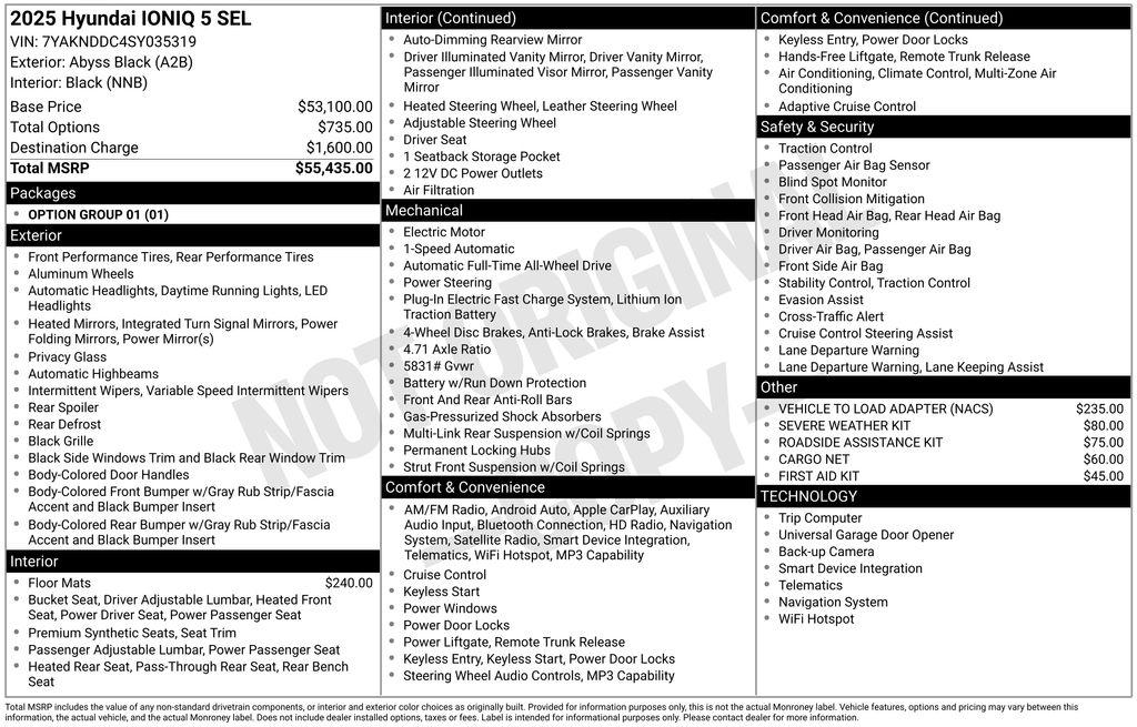 Abyss Black 2025 Hyundai IONIQ 5 SEL AWD 1-Speed Automatic Electric Motor 116/96 City/Highway MPG