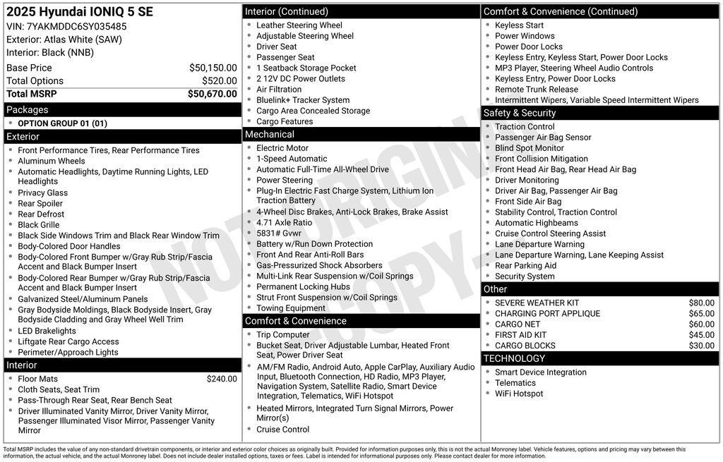 Atlas White 2025 Hyundai IONIQ 5 SE AWD 1-Speed Automatic Electric Motor 110/87 City/Highway MPG