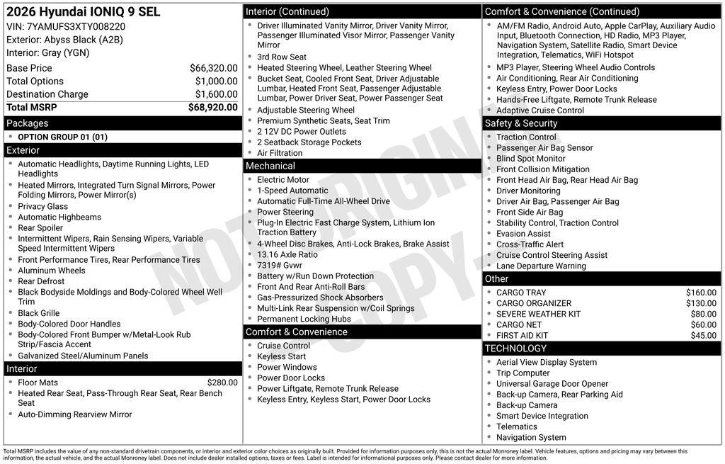 Abyss Black 2026 Hyundai IONIQ 9 SEL AWD 1-Speed Automatic Electric Motor