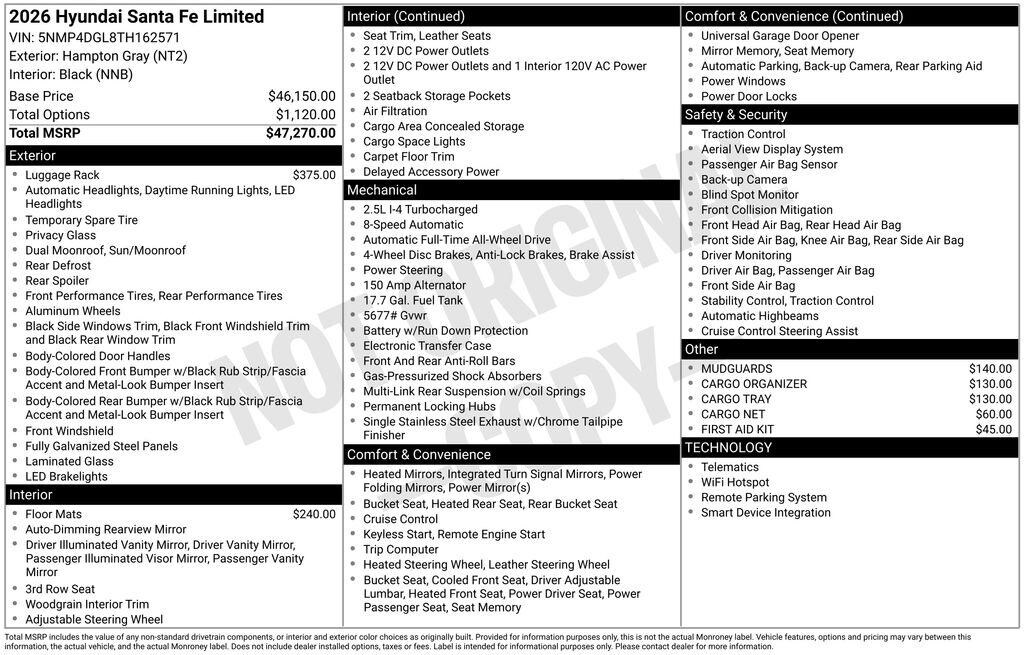 Hampton Gray 2026 Hyundai Santa Fe Limited AWD 8-Speed Automatic with SHIFTRONIC 2.5L I4