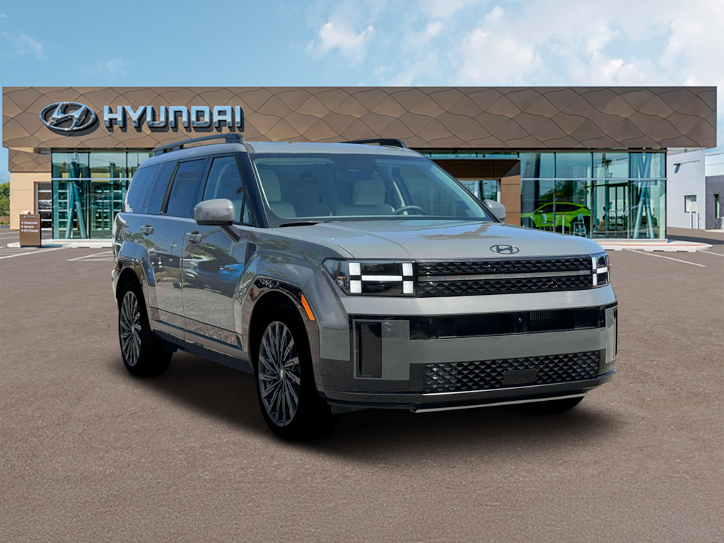 Option Group 01, AWD, Gray Leather, 12 Speakers, 3rd row seats: bench, 4-Wheel Disc Brakes, ABS brakes, Air Conditioning, Alloy wheels, AM/FM radio: SiriusXM, Apple CarPlay & Android Auto, Auto High-beam Headlights, Auto-dimming Rear-View mirror, Automatic temperature control, Brake assist, Bumpers: body-color, Cargo Net, Cargo Tray, Carpeted Floor Mats, Delay-off headlights, Driver door bin, Driver vanity mirror, Dual front impact airbags, Dual front side impact airbags, Electronic Stability Control, Emergency communication system, Exterior Parking Camera Rear, First Aid Kit, Four wheel independent suspension, Front anti-roll bar, Front Bucket Seats, Front Center Armrest, Front dual zone A/C, Front reading lights, Fully automatic headlights, Garage door transmitter: HomeLink, Heads-Up Display, Heated & Ventilated Front Bucket Seats, Heated door mirrors, Heated front seats, Heated rear seats, Heated steering wheel, Illuminated entry, Knee airbag, Leather steering wheel, Low tire pressure warning, Memory seat, Mudguards, Navigation System, Occupant sensing airbag, Outside temperature display, Overhead airbag, Overhead console, Panic alarm, Passenger door bin, Passenger vanity mirror, Power door mirrors, Power driver seat, Power Liftgate, Power moonroof, Power passenger seat, Power steering, Power windows, Quilted Premium Nappa Leather Seat Trim, Radio: AM/FM/HD Bose Premium Audio System, Rain sensing wipers, Rear anti-roll bar, Rear side impact airbag, Rear window defroster, Rear window wiper, Remote keyless entry, Roof Rack Crossbars, Security system, Severe Weather Kit, Speed control, Speed-sensing steering, Split folding rear seat, Spoiler, Steering wheel mounted audio controls, Tachometer, Telescoping steering wheel, Tilt steering wheel, Traction control, Trip computer, Turn signal indicator mirrors, Variably intermittent wipers, Ventilated front seats, and Wheels: 21" x 8.5J Unique Dark Finish Alloy. Price includes: $3500 - Hyundai HMF Dealer Choice : $3500 discount and/or 5.49% APR for 24 months. $44.09 per $1000 financed. Available to well qualified buyers who finance through Hyundai Motor Finance. H704. Exp. 01/02/2026