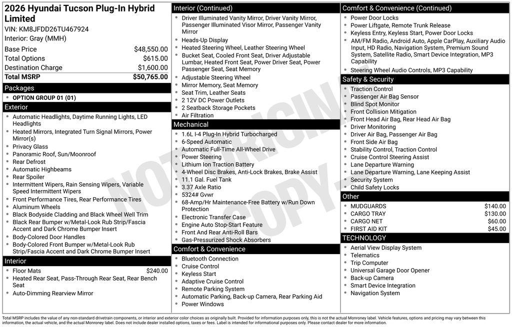 Ash 2026 Hyundai Tucson Plug-In Hybrid Limited AWD 6-Speed Automatic 1.6L I4 DGI Hybrid Turbocharged DOHC 16V LEV3-SULEV30