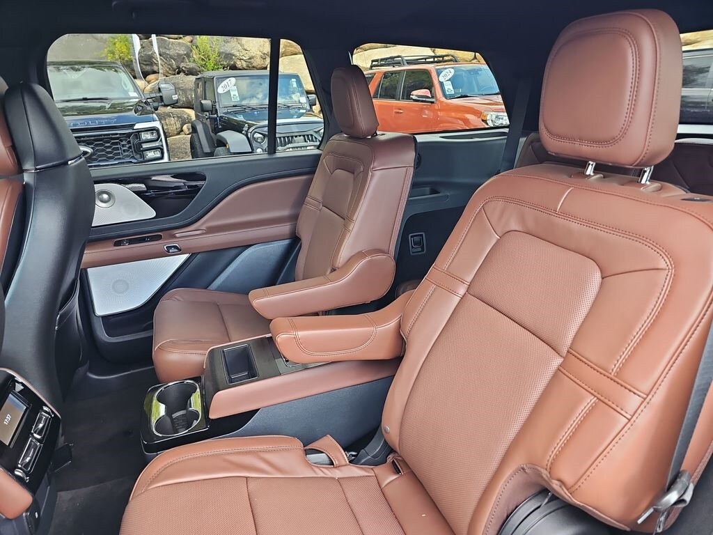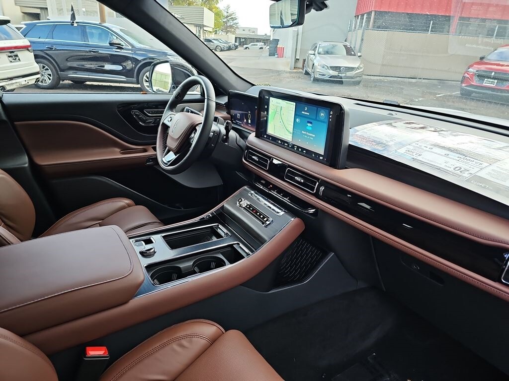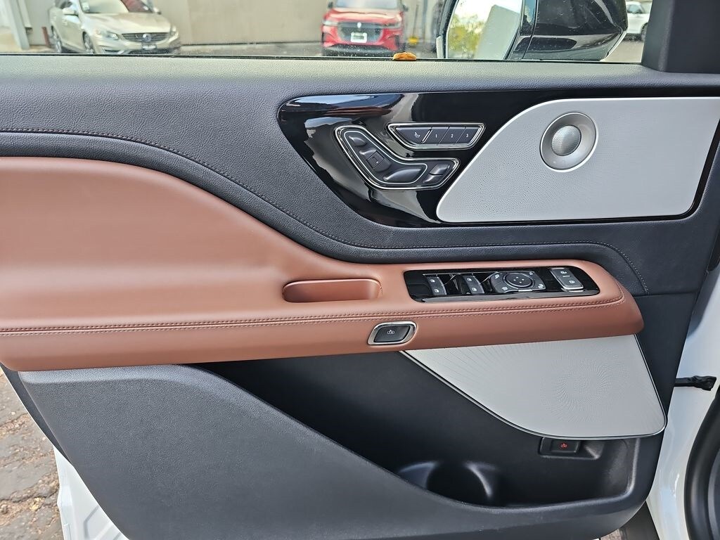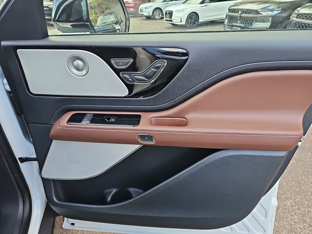 EQUIPMENT GROUP 201A Wheels: 22 Bright-Machined Aluminum, magnetic-painted pockets and adaptive suspension, Note: Adaptive suspension includes noise reduction module and sound insulation pack, Tires: 275/40R22 107 W-Rated, Illumination Package, Lincoln Dynamic Signature Lighting, LED daytime running lamps (sequential fade on/off), Illuminated Lincoln Star in Grille, Speed Dependent Lighting, Adaptive Pixel LED Headlamps, Adaptive Dynamic Bending Lighting, Advanced Heads-Up Display, Auto Air Refresh, Wireless Charging Pad, Luxury Package, Heated & Ventilated Rear Seats, 30-Way Perfect Position Seats w/Active Motion, massage, Radio: Revel Ultima 3D Audio System w/28 Speakers, subwoofer and QuantumLogic 3D Surround technology, FULL REAR CONSOLE 2 smart charging USB ports (type C & C), TRANSMISSION: 10-SPEED AUTOMATIC W/SELECTSHIFT (STD). Lincoln Reserve with Pristine White Metallic Tri-Coat exterior and Hot Chocolate interior features a V6 Cylinder Engine with 400 HP at 5500 RPM*.